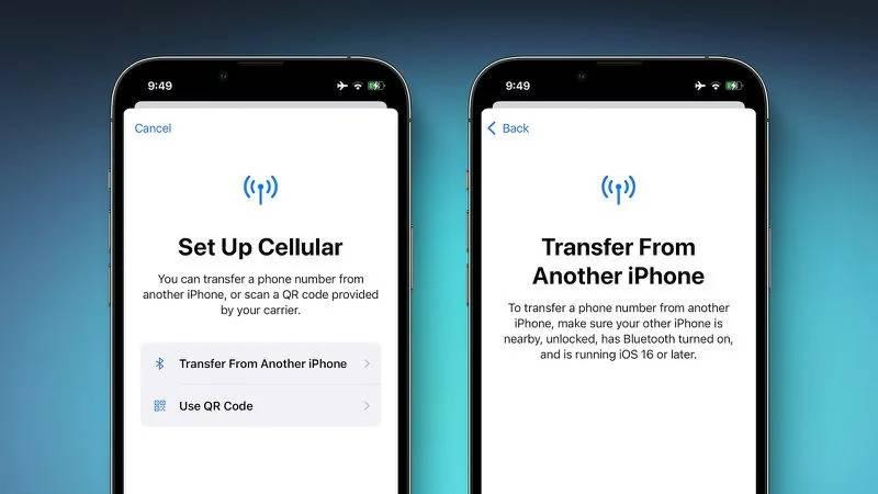 Trong ứng dụng Cài đặt trên iPhone chạy iOS 16, chạm vào “Thiết lập eSIM” sẽ hiển thị tùy chọn để chuyển eSIM và số điện thoại được liên kết của nó từ iPhone khác qua Bluetooth. Để chuyển eSIM từ một iPhone khác, Apple cho biết hãy đảm bảo rằng iPhone khác đang ở gần, đã mở khóa, đã bật Bluetooth và đang chạy iOS 16 trở lên.