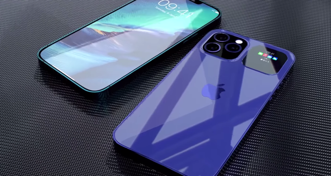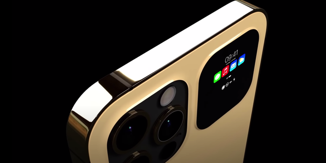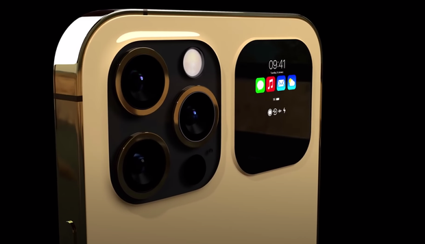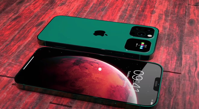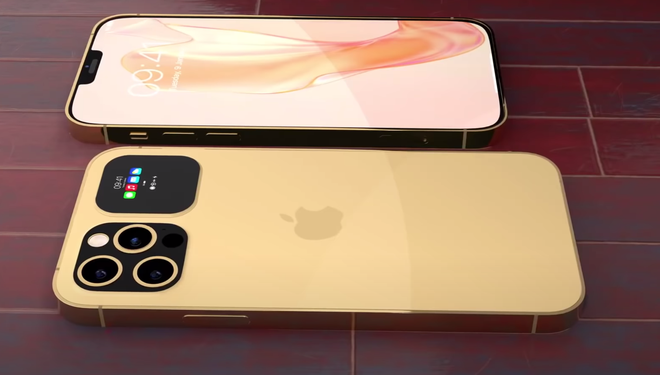 Trong những hình ảnh được nhà thiết kế này công bố, iPhone 13 Pro sẽ có một màn hình phụ phía sau mặt lưng, có kích thước gần như bằng với cụm camera để tạo tính đối xứng. Màn hình phụ này sẽ hiển thị một số thông tin cơ bản như email, thời tiết, iMessenger, Apple Music, dung lượng pin...