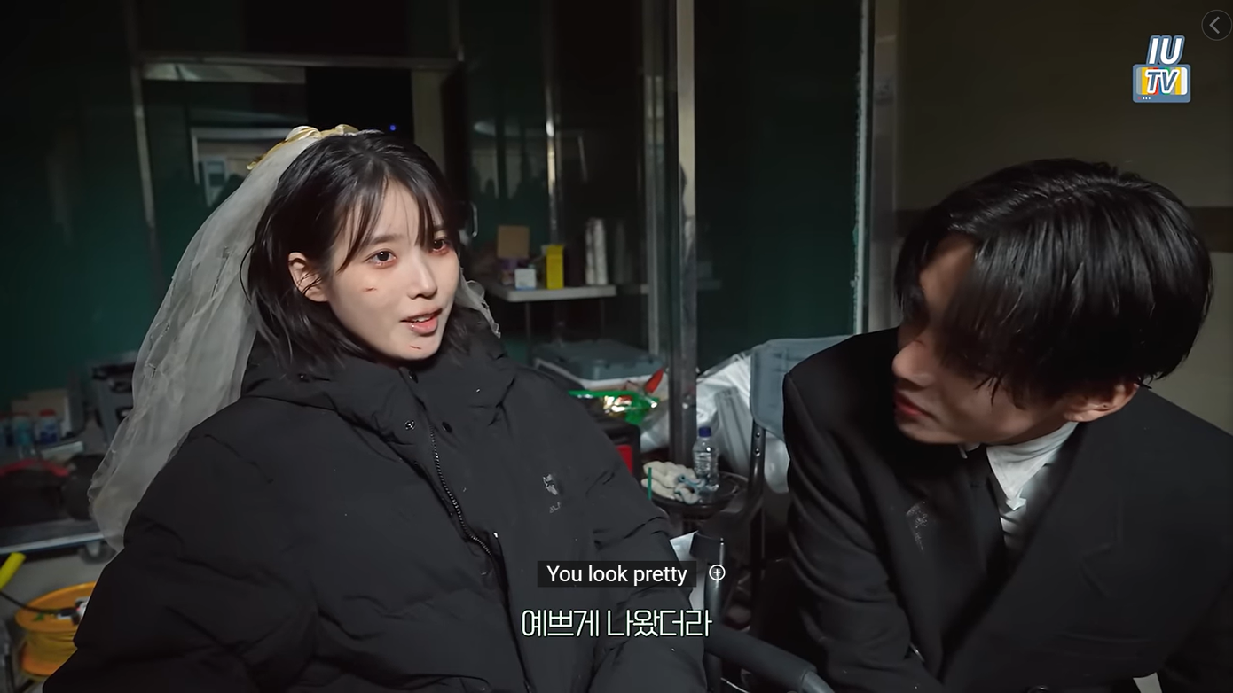Trong phân đoạn chụp ảnh cưới đầy tình tứ, cả hai khiến người hâm mộ thích thú khi cùng nhau chụp ảnh đầy thoải mái, vui vẻ. Dù không có nhiều tương tác ngoài đời nhưng có lẽ IU và V đã giữ mối quan hệ thân thiết nên chẳng ngại ngùng khi cùng thực hiện những cảnh quay lãng mạn, gần gũi.