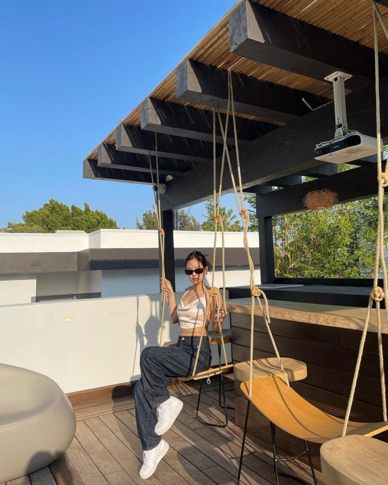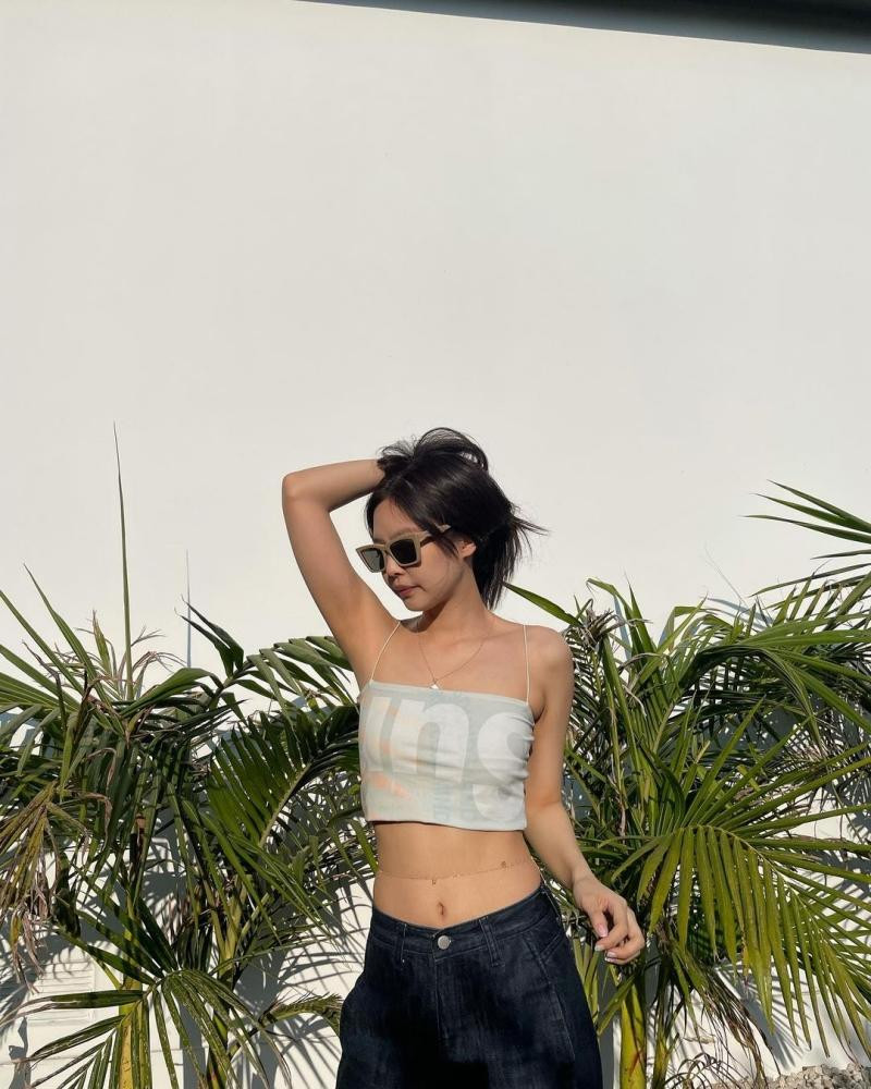 Dường như Jennie rất thích chiếc lắc này, cô cố tình mặc rất nhiều kiểu trang phục hở eo để có thể khoe được chiếc lắc xinh đẹp.