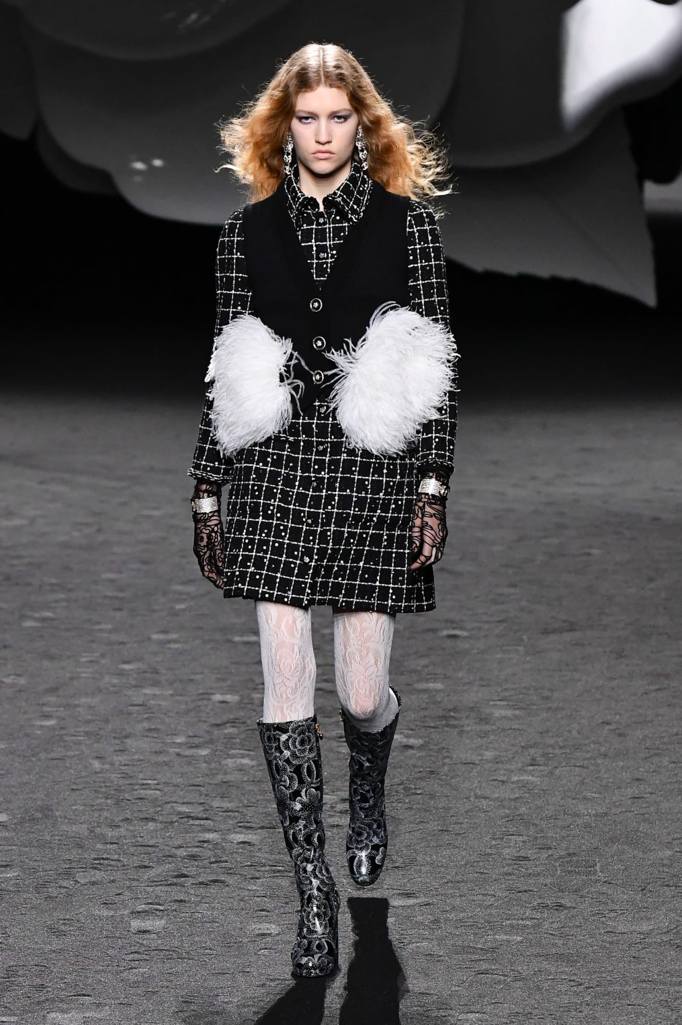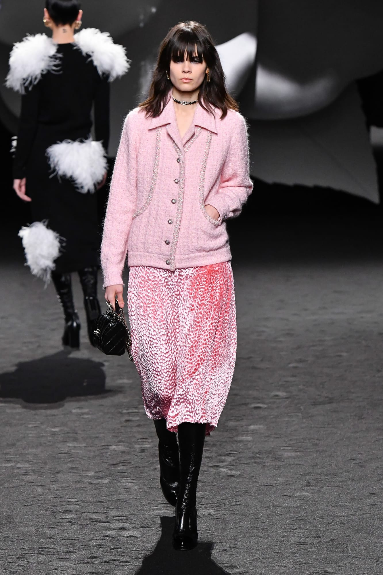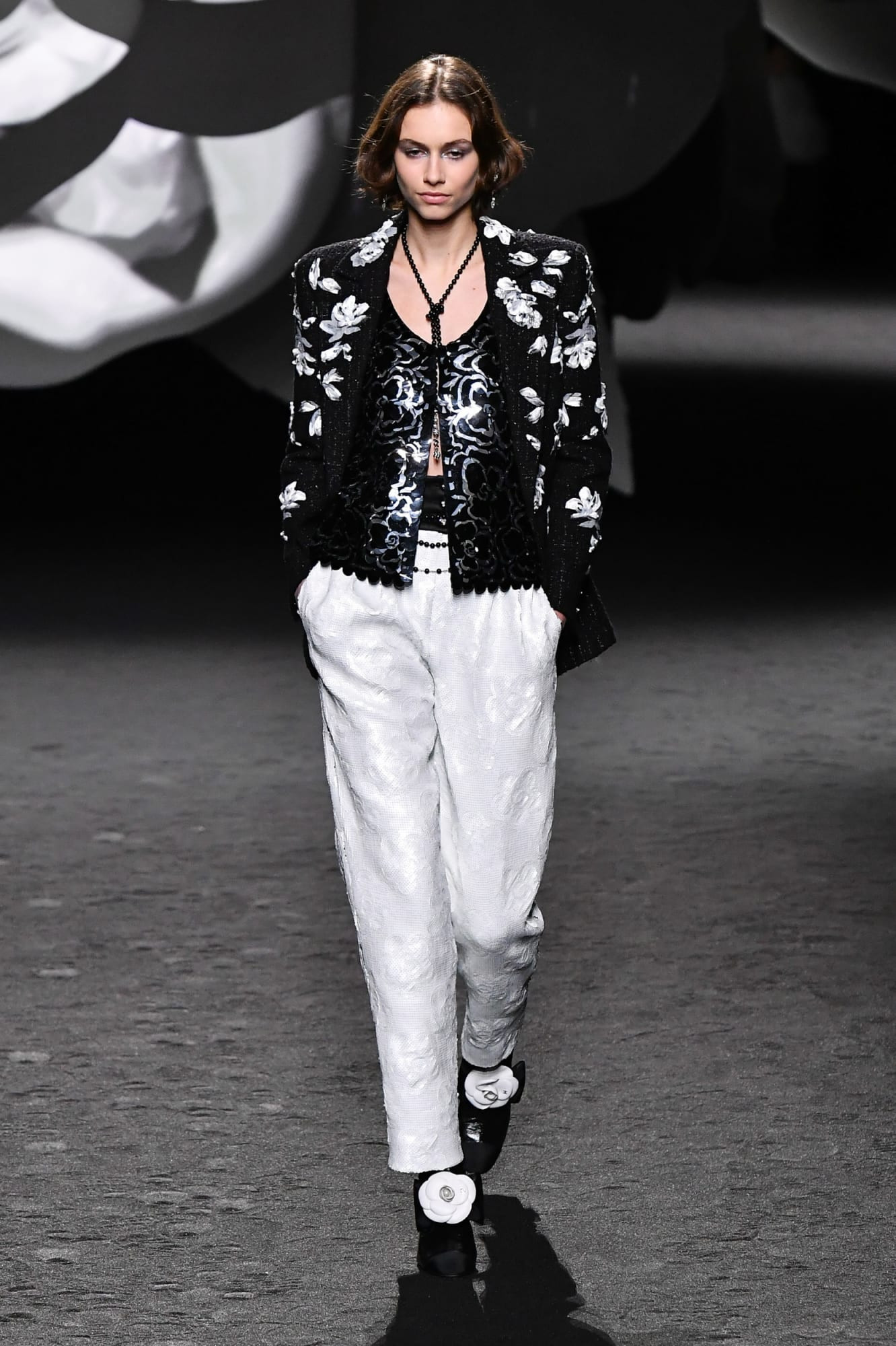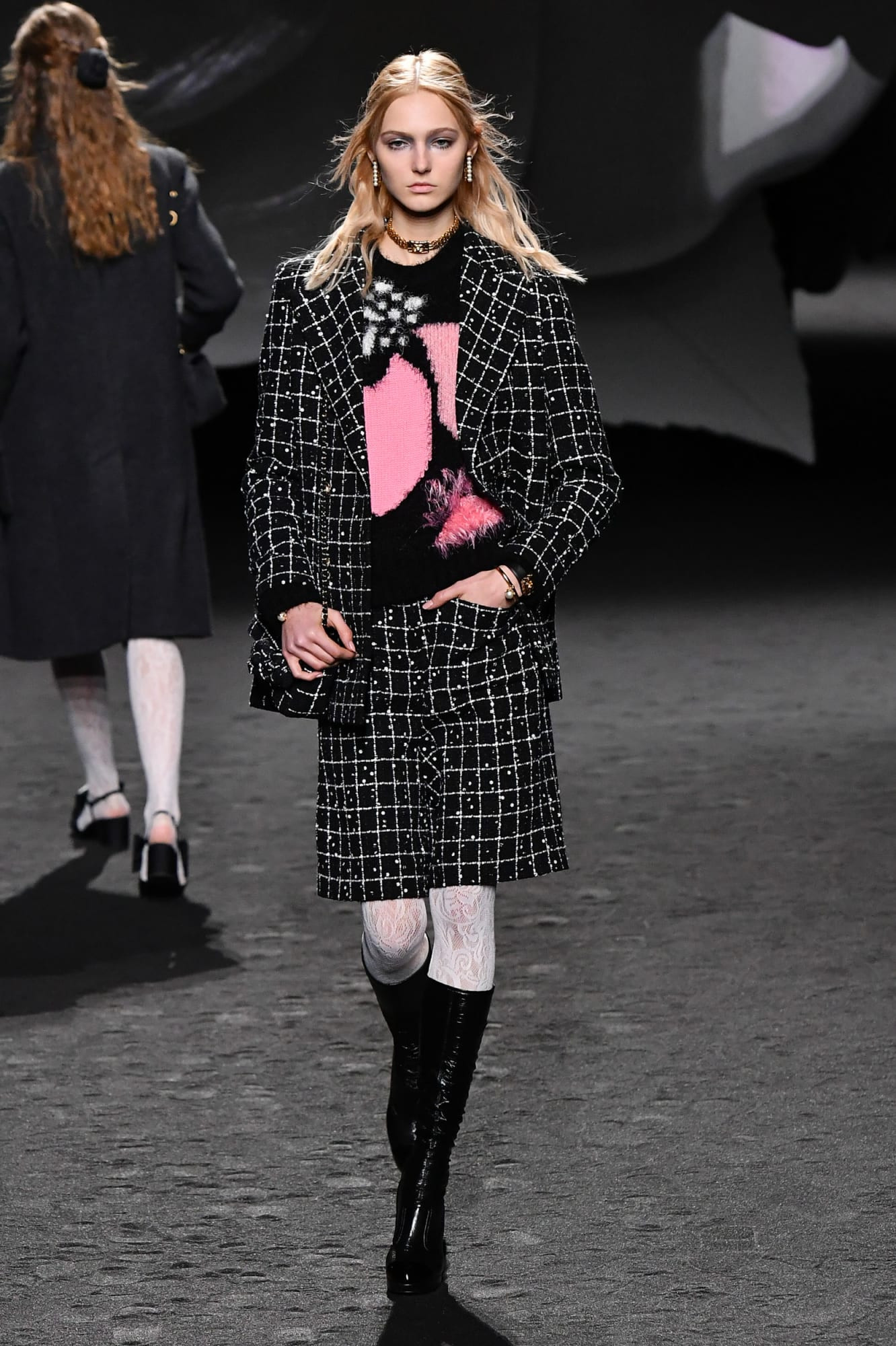 Và quả thật như vậy, lần này Chanel đã chọn nguồn cảm hứng Mod Chic thập niên 1960. Trên đường băng, không có chỗ cho màu sắc. Màu đen và trắng chiếm ưu thế, ngoại trừ set phối màu hồng bụi bặm kết hợp với chân váy đính sequin và một số set đồ vải tweed khác có màu hồng anh đào. Bất chấp hướng đi mới hoàn toàn tối giản, doanh số bán hàng của Chanel đã vượt 15 tỷ USD vào năm 2022, với lợi nhuận ròng là 4 tỷ USD.