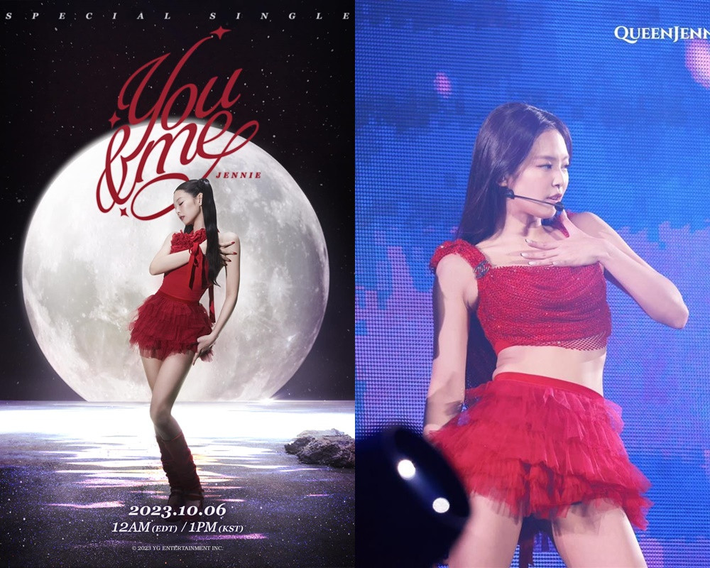 Bên cạnh đó, netizen đã chú ý đến trang phục mà Jennie mặc trong tấm poster quảng bá You & Me. Cô tiếp tục diện phong cách Balletcore đầy ngọt ngào, nữ tính mà vẫn nổi bật với màu sắc đỏ rực. Chân váy vài tulle xếp tầng đã được Jennie mặc trong đêm diễn cuối cùng của concert Born Pink ở Seoul hồi tháng 9.