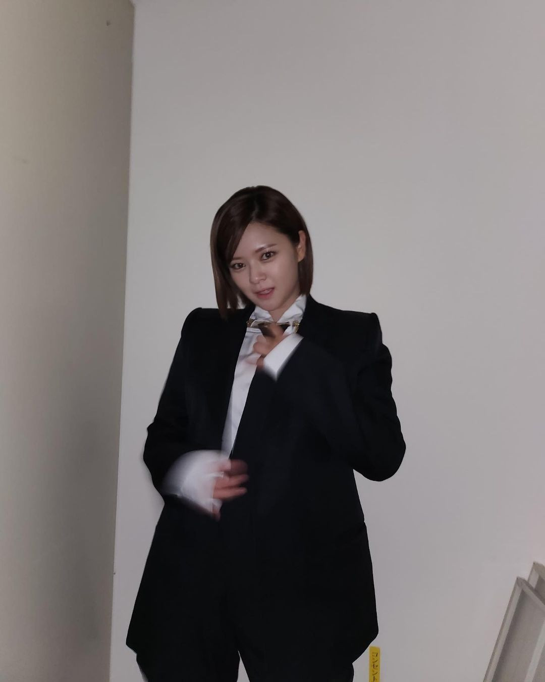 Trong ảnh, Jeongyeon thu hút sự chú ý khi trông thon gọn trong bộ vest đen. Mặc dù để tóc ngắn, kiểu tóc thường khiến các cô gái trông mũm mĩm hơn, nhưng Jeongyeon lại khoe được khuôn mặt nhỏ, thanh thoát hơn trước.