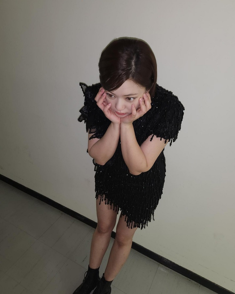 Trong những bức ảnh khác, Jeongyeon mặc một chiếc váy ngắn màu đen, khoe vẻ đẹp góc cạnh hiếm có, tay chân thon gọn.
