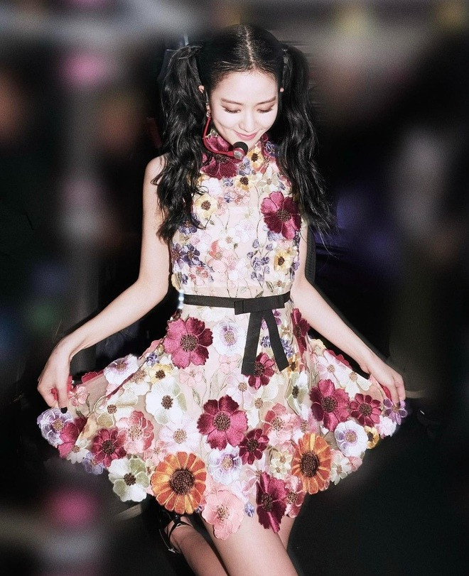 Cũng có lúc, Jisoo lại lí lắc với tóc buộc hai bên như thế này. Cộng thêm bộ váy hoa rực rỡ là đủ để chị cả BLACKPINK trở thành nàng búp bê xinh đẹp.