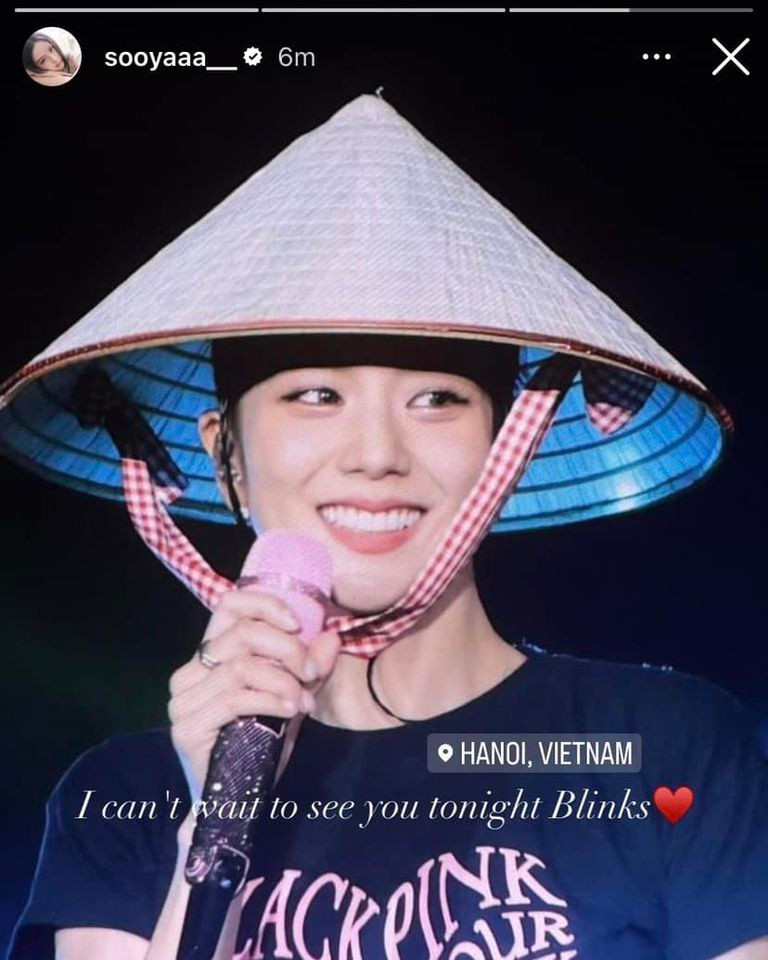 Đặc biệt, lần mà V-BLINK gần gũi nhất với BLACKPINK, phải kể tới concert mới đây tại Hà Nội. Sau khi kết thúc ngày diễn đầu tiên, Jisoo đã đăng tải hình ảnh mình đội nón lá, phấn khích hẹn gặp fan Việt vào đêm diễn còn lại.