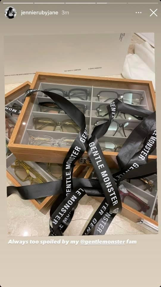 Các nhãn hàng đang hợp tác với BLACKPINK cũng vậy. Jennie vừa khoe hộp quà cực xịn xò của thương hiệu Gentle Monster mà cô từng hợp tác để cho ra bộ sưu tập kính Jentle Home.