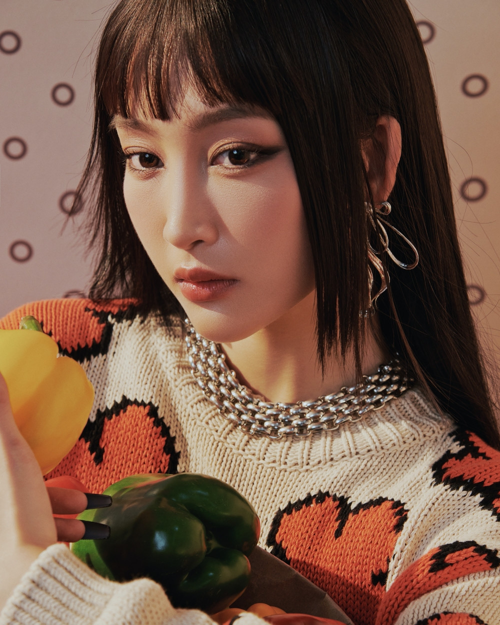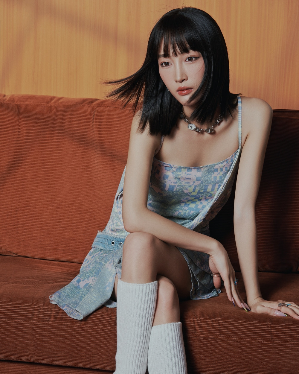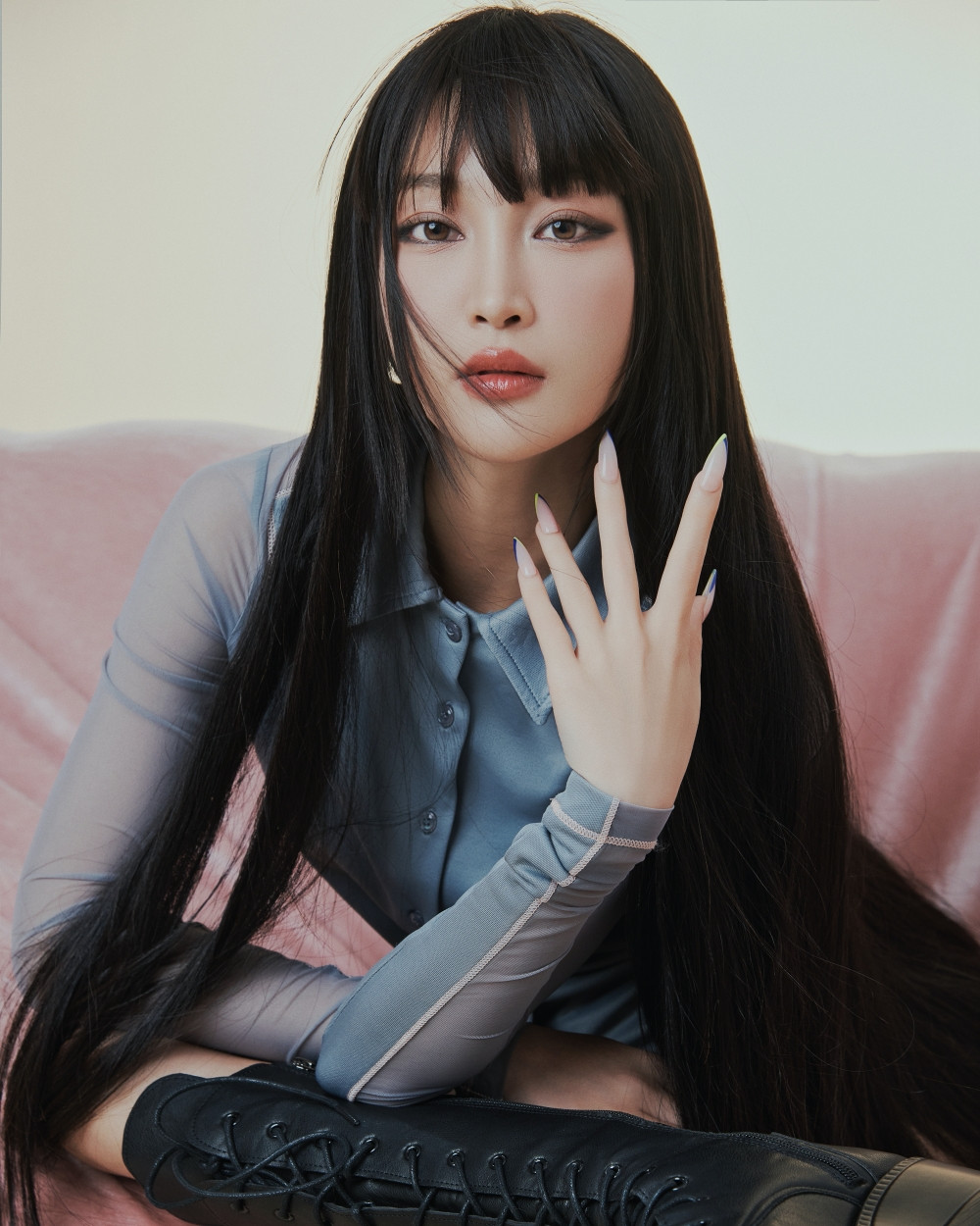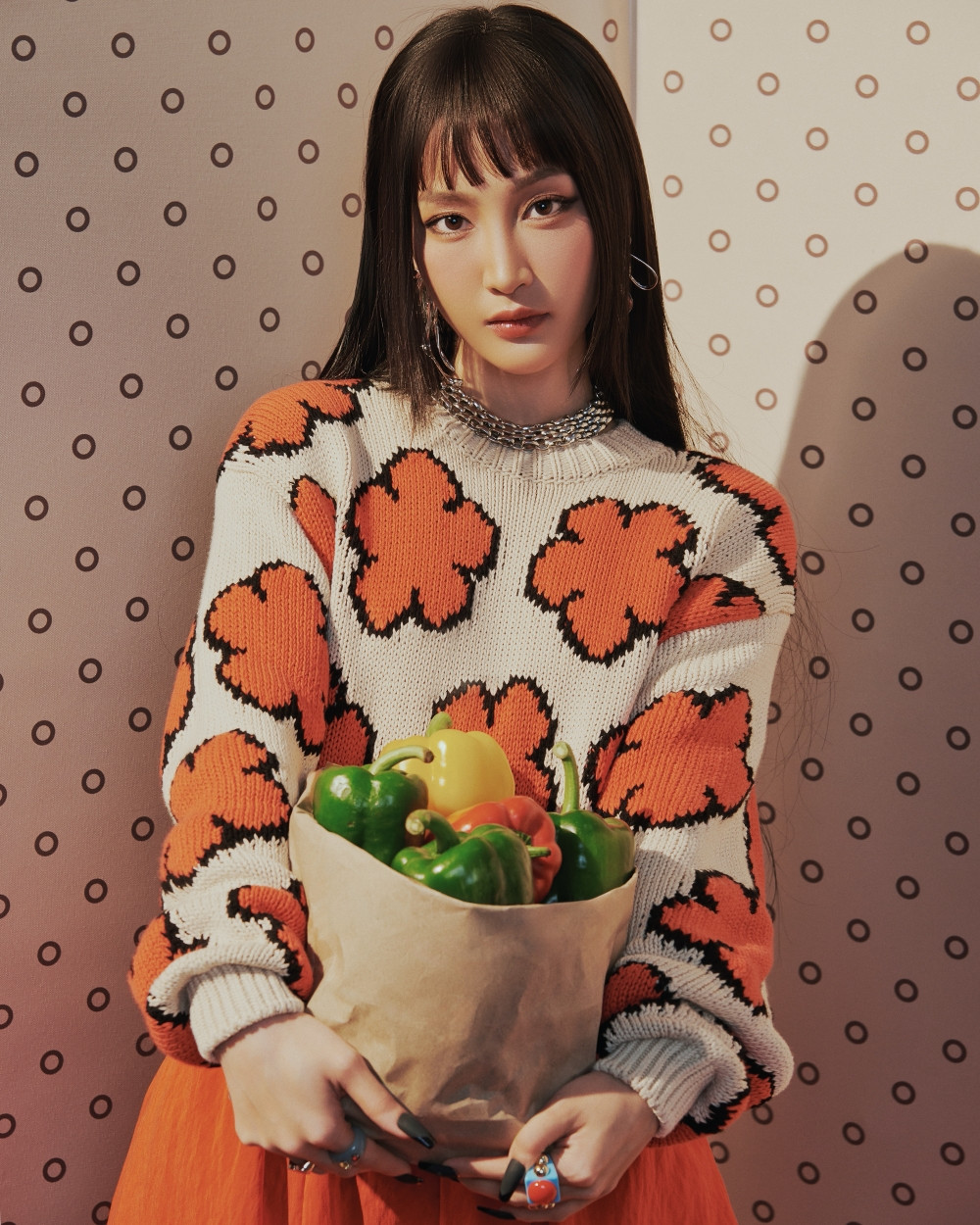 Sau 4 năm, người hâm mộ có thể thấy rõ Juky San thăng hạng về nhan sắc, cách pose dáng trước ống kính cũng tự tin, chuyên nghiệp hơn. Trong bộ ảnh lần này, nữ ca sĩ chọn kiểu tóc mái cá tính, trang điểm sắc sảo với điểm nhấn là màu mắt đậm, đôi môi ánh cam nổi bật.