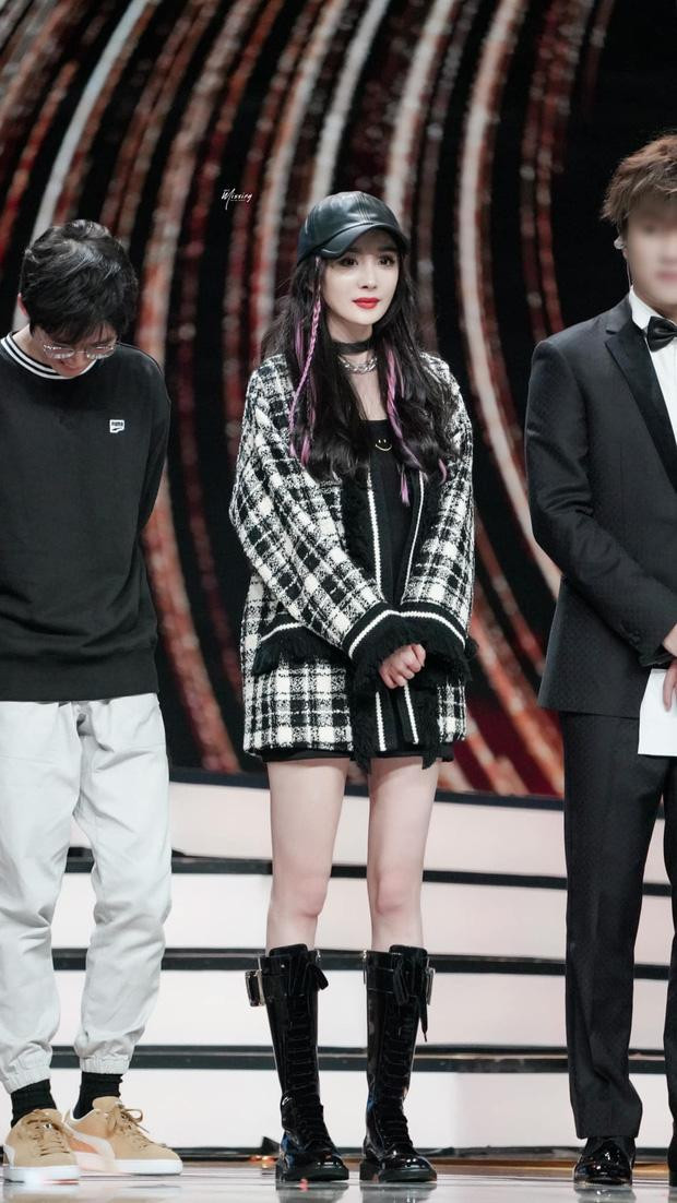 Dương Mịch chỉ cần cắt ngắn mẫu váy đen ôm sát thôi là đã khoe được đôi chân cực phẩm của mình. Ai cũng thấy nếu Dương Mịch giữ nguyên mẫu váy dài ngang bắp chân thì set đồ nhìn sẽ nặng nề, không thể tôn dáng như thế này.