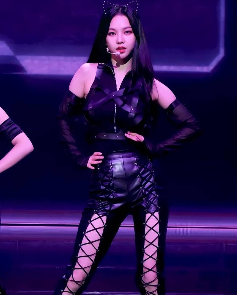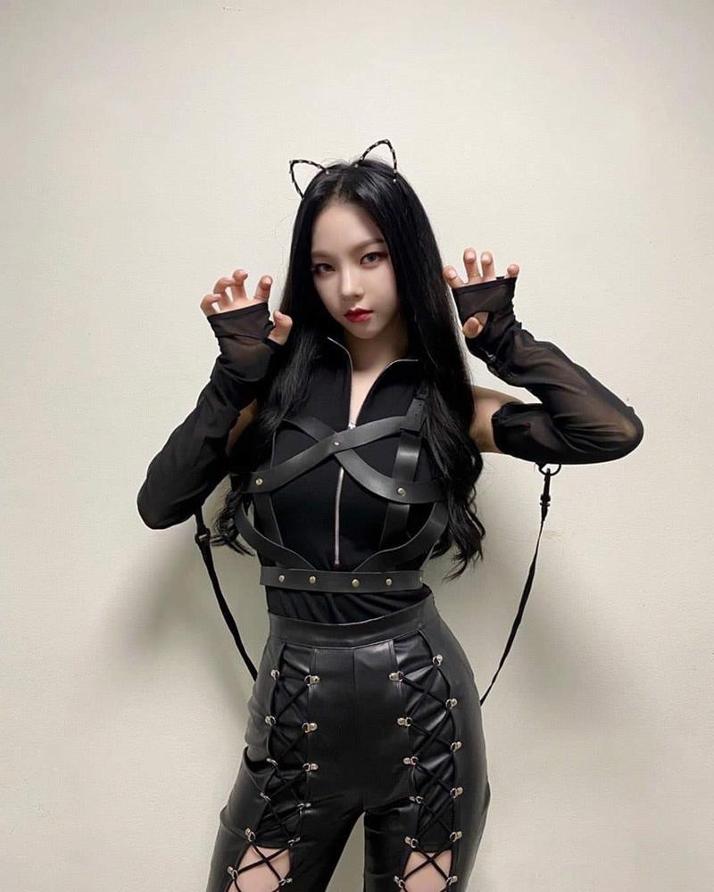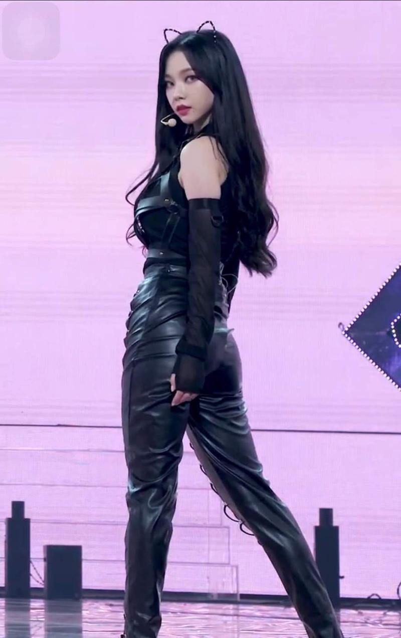 Karina xuất hiện trong trang phục full đen với tạo hình cat woman, trang phục chất liệu da được mix & match cầu kỳ giúp Karina nổi bật trên sân khấu và nhận về cơn mưa lời khen vì vừa tôn dáng lại vừa quyến rũ.