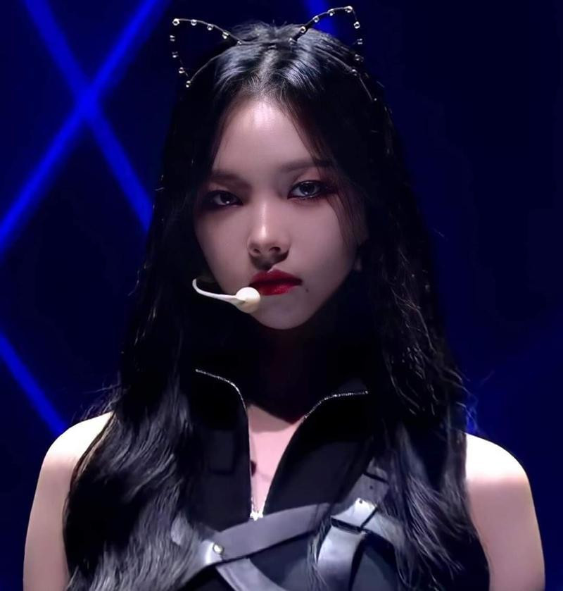 Sự xuất hiện đầu tiên của Karina trong màn trình diễn khiến netizen đứng hình vì góc quay cận mặt hoàn hảo, Karina đeo lens màu xanh thẫm, xõa tóc đen và đeo tai mèo xinh xắn. Thần thái và visual của Karina trông hệt như được tạo ra từ công nghệ ảo AI, đường nét gương mặt sắc sảo đến từng chi tiết.