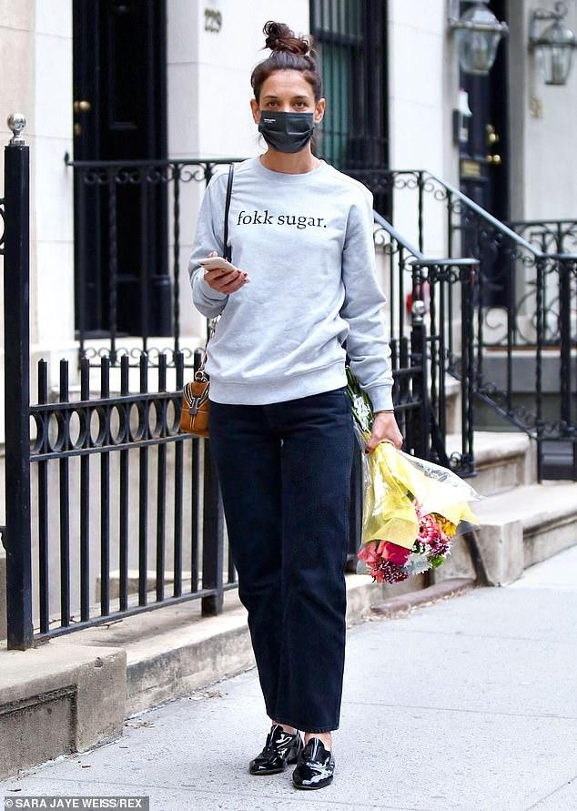 Theo đó, nữ diễn viên sinh năm 1978 mặc đơn giản, tóc búi cao, đeo khẩu trang phòng dịch và tay cầm một bó hoa trên đường phố. Hình ảnh cô đơn này của Katie Holmes được đăng tải trên Dailymail ngay lập tức gây chú ý bởi đã có tin đồn cô và nam đầu bếp nổi tiếng Emilio Vitolo chia tay trong im lặng.
