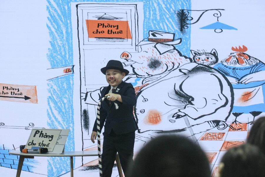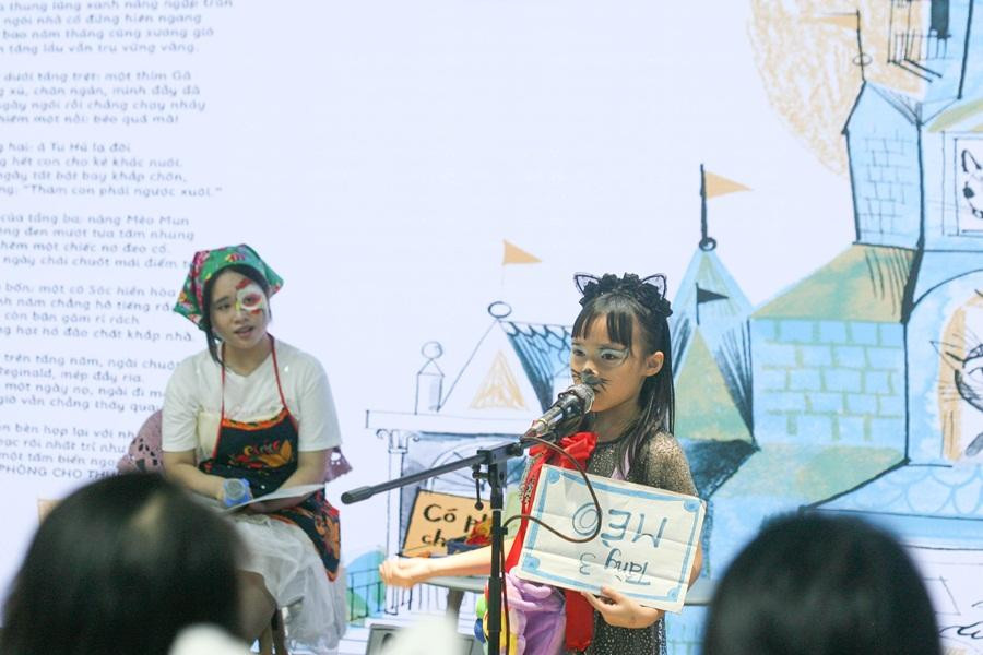 Trong buổi ra mắt sách Phòng cho thuê, các bạn nhỏ của lớp Nghĩ và Viết thuộc CLB Đọc sách cùng con đã hóa thân vào các nhân vật trong câu chuyện, tạo nên một vở kịch nói sôi động, đầy vui vẻ.