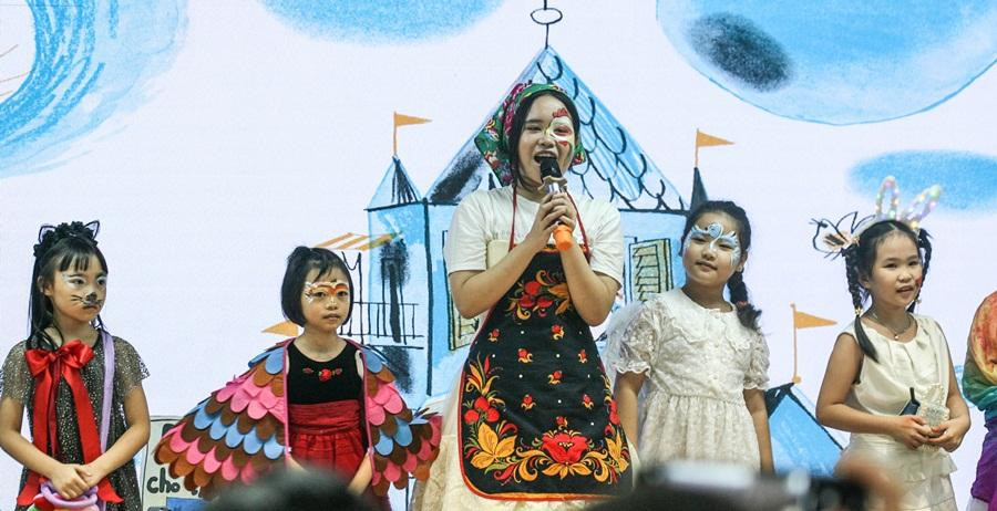 | Các bạn nhỏ trong CLB Đọc sách cùng con đã mang đến vở kịch "Phòng cho thuê" đầy hứng khởi, dù chỉ mới tập luyện trong 3 ngày. |