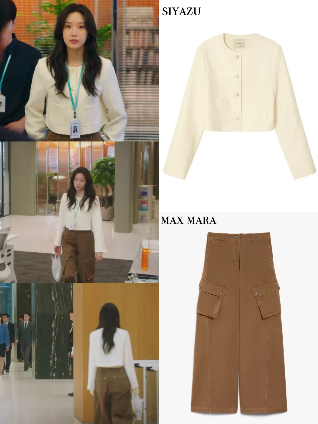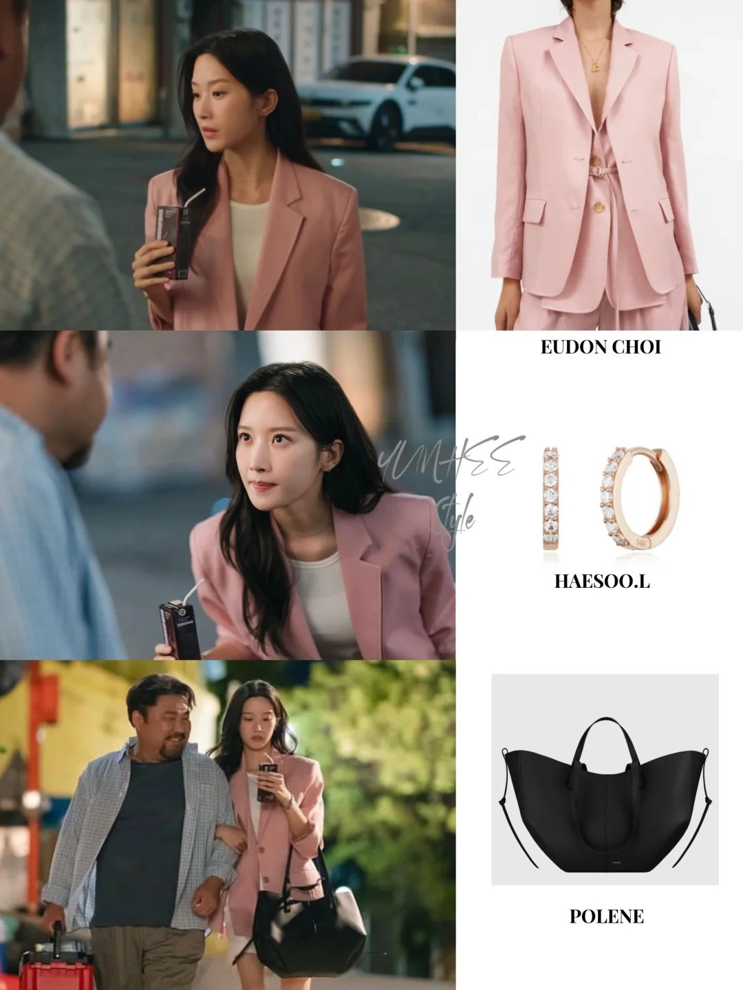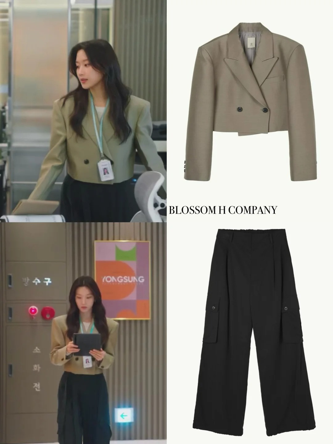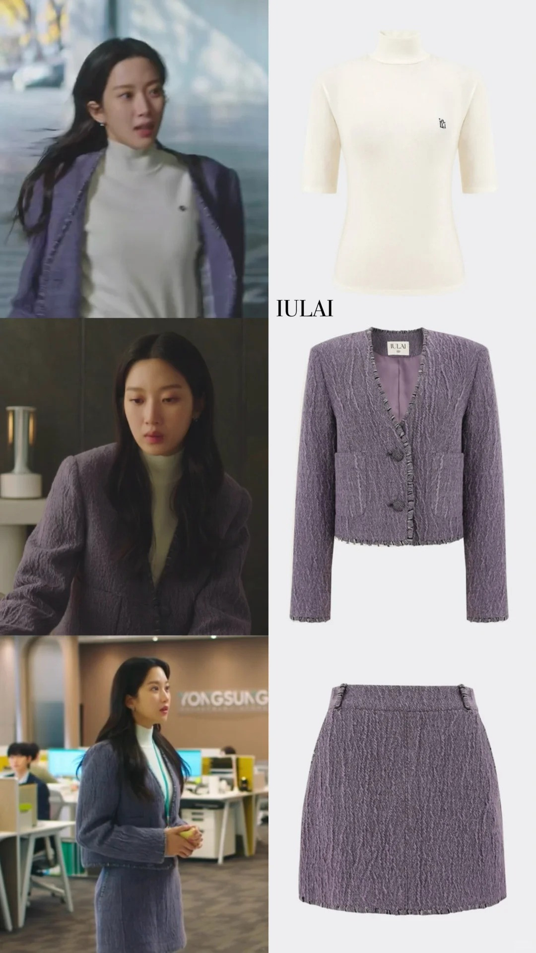 Các mẫu áo khoác chất liệu dạ tweed hay dáng blazer cũng được nữ trưởng phòng Baek Su Jeong nhiều lần lăng xê trong các phân cảnh tại nơi làm việc. Các thiết kế có chất liệu cứng cáp, có phần vai vuông vức mang đến vẻ quyền lực cho nữ chính. Tuy nhiên, cô khéo léo chọn bảng màu nổi bật sắc tím, hồng hay vàng bơ nhằm cân bằng tính nữ, vẻ tự tin cho diện mạo của mình.