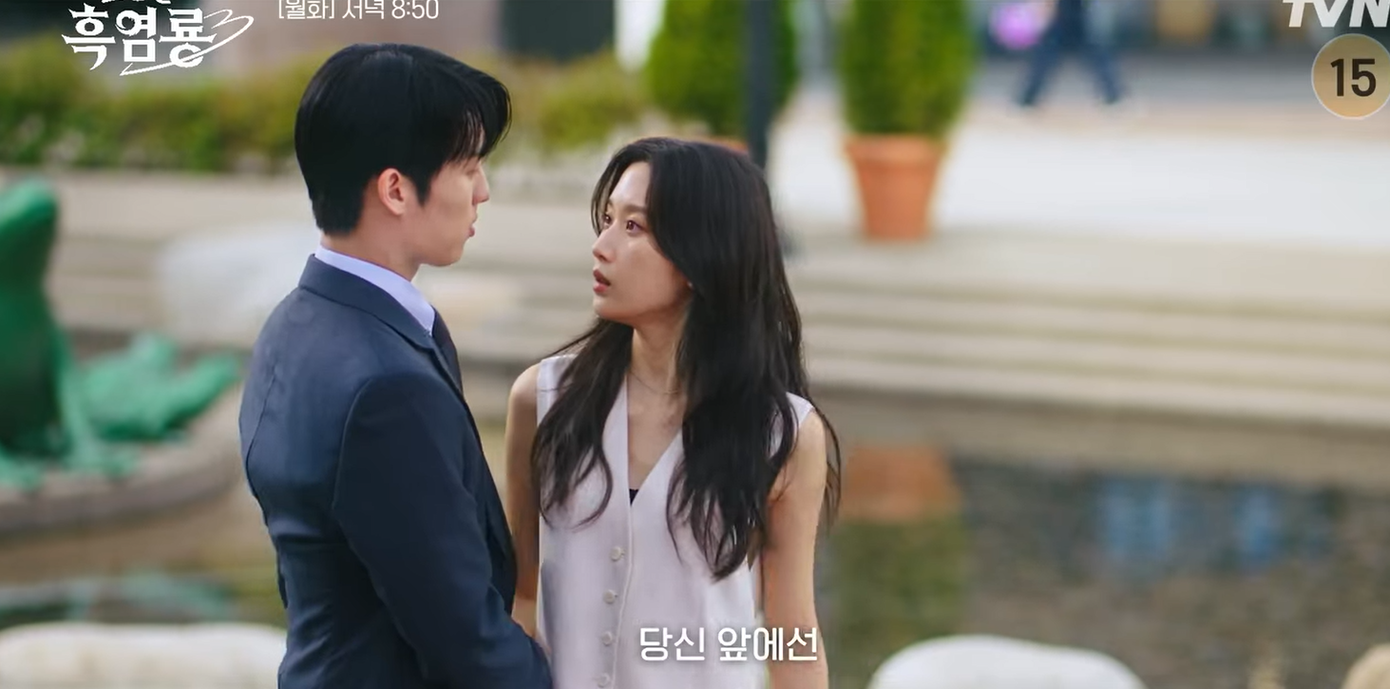 Trước khi vào tiệc, Baek Su Jeong (Moon Ga Young) đã cảnh cáo Ban Ju Yeon (Choi Hyun Wook) không được giới thiệu cô là bạn gái. "Tổng tài" Ban cũng nghiêm mặt phủ nhận, chê cô có suy nghĩ lỗi thời. Nhưng kết tập 2 của My Dearest Nemesis, Ju Yeon giúp Su Jeong thoát khỏi tên công tử quấy rối và gọi cô là "bé cưng".