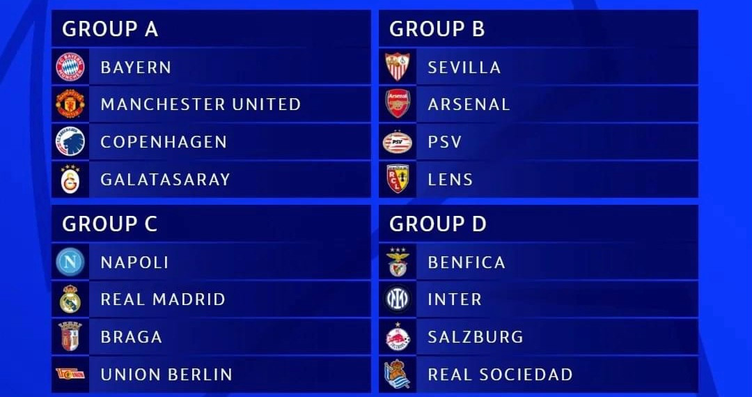 Bảng C: Napoli, Real Madrid, Sporting Braga, Union Berlin.