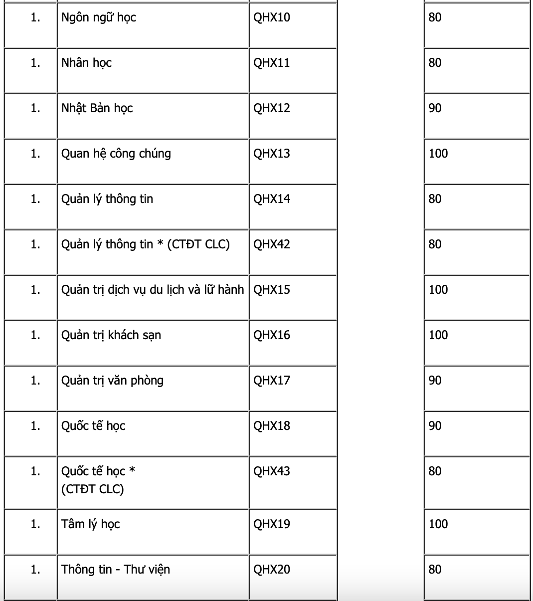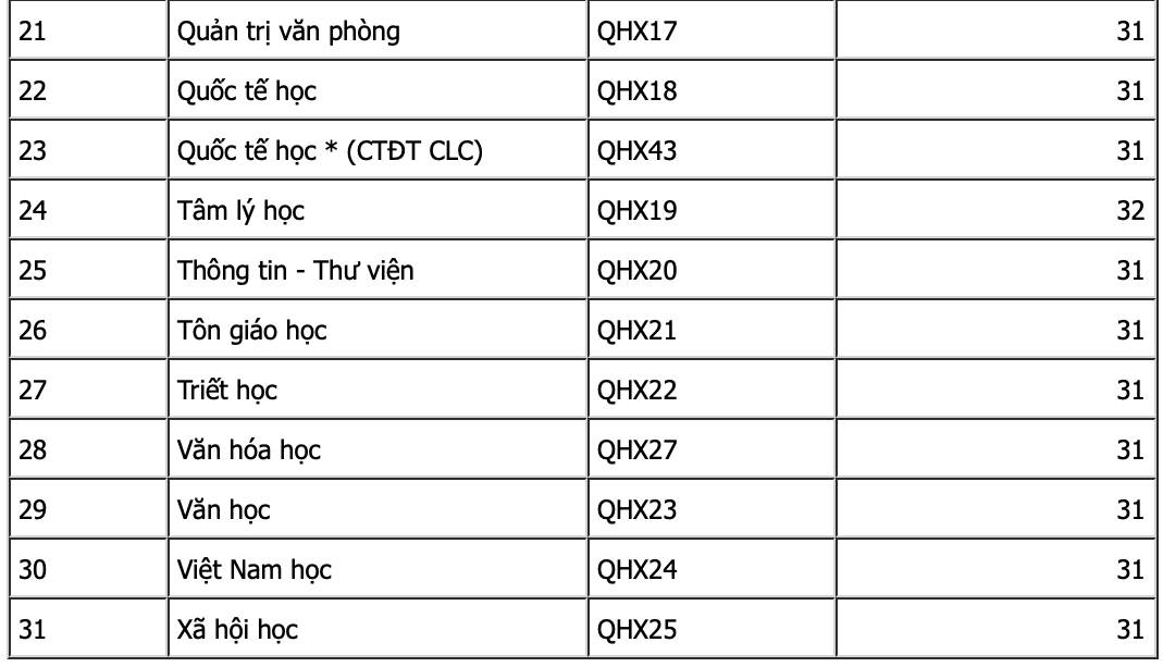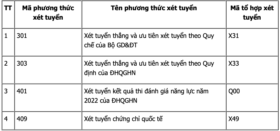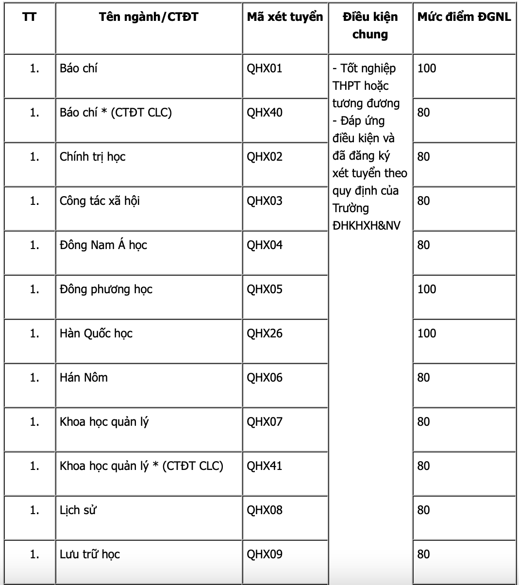 - Đáp ứng điều kiện (điểm ngoại ngữ, điểm thi tổ hợp 2 môn tốt nghiệp THPT năm 2022) và đã đăng ký xét tuyển theo quy định của Trường ĐHKHXH&NV.