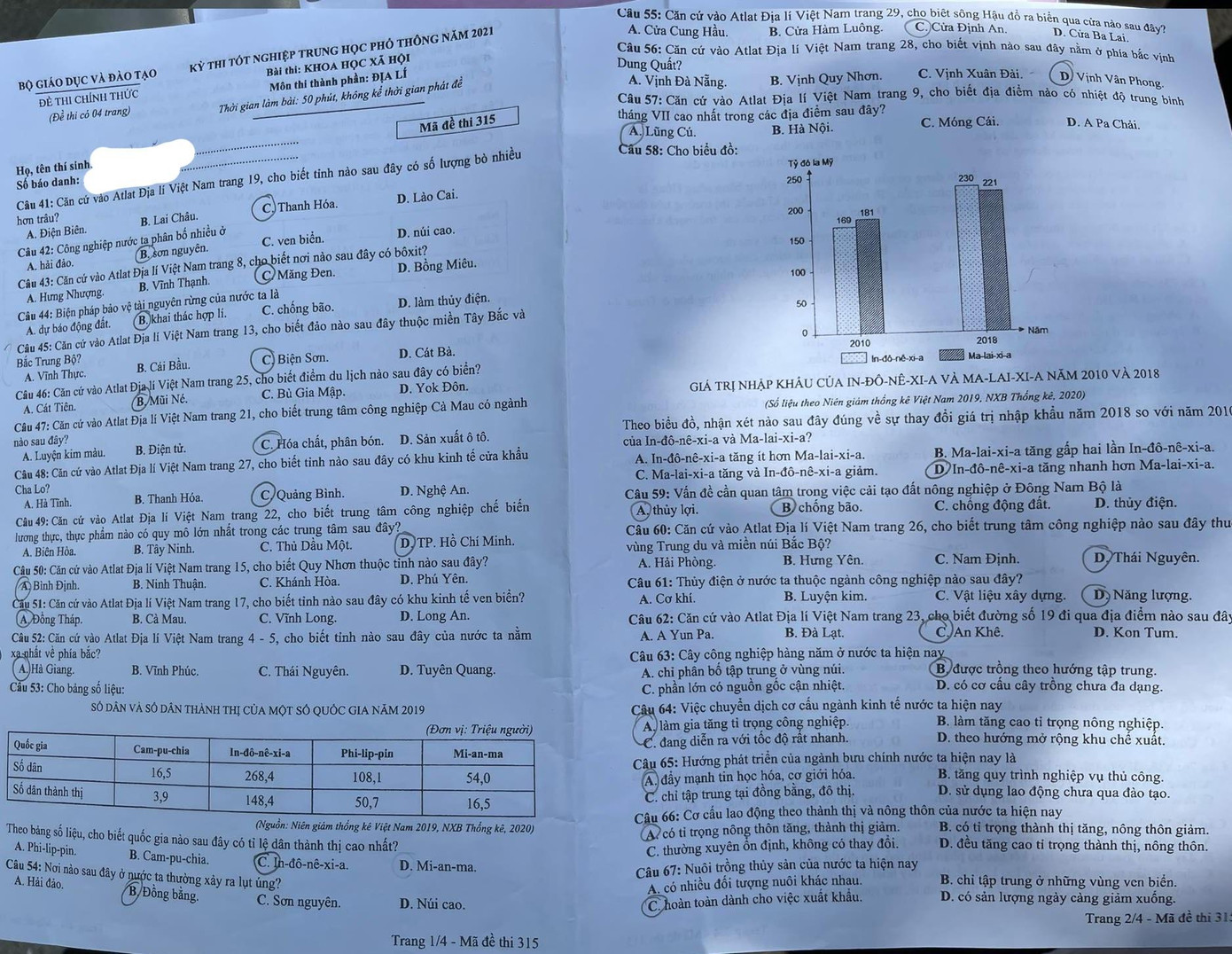 Đề thi Địa lý, bài thi tổ hợp Khoa học xã hội.