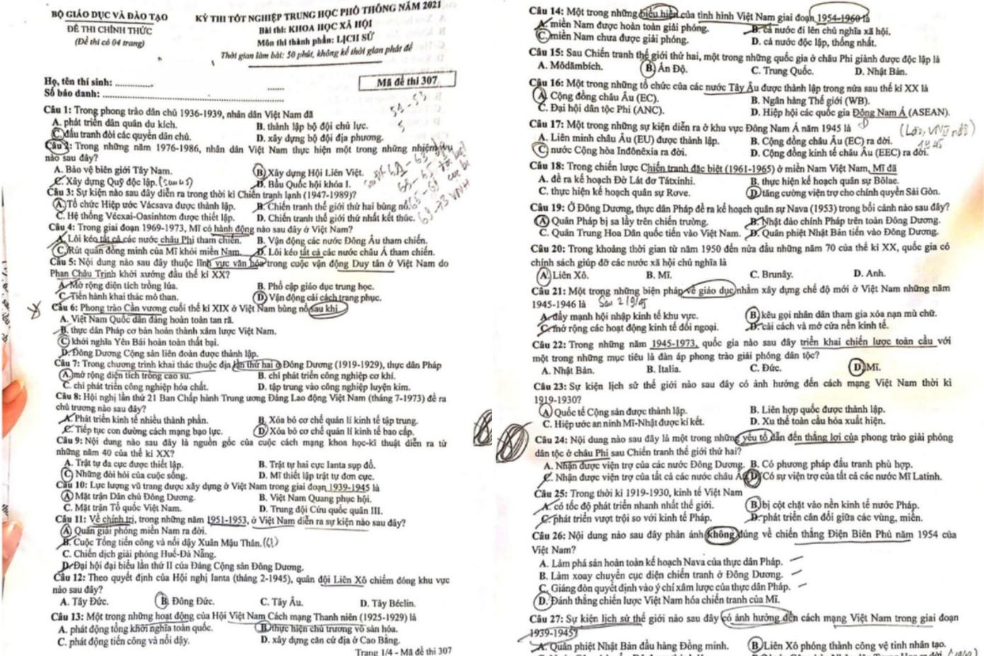 Đề thi môn Lịch sử, bài thi tổ hợp Khoa học xã hội.