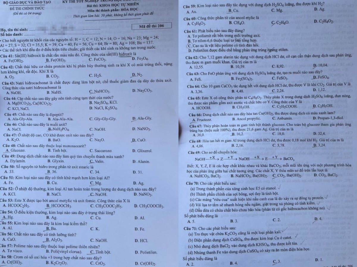 Đề thi môn Hóa học, bài thi tổ hợp Khoa học tự nhiên.