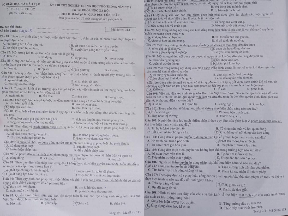 Đề thi Giáo dục công dân, tổ hợp Khoa học xã hội.
