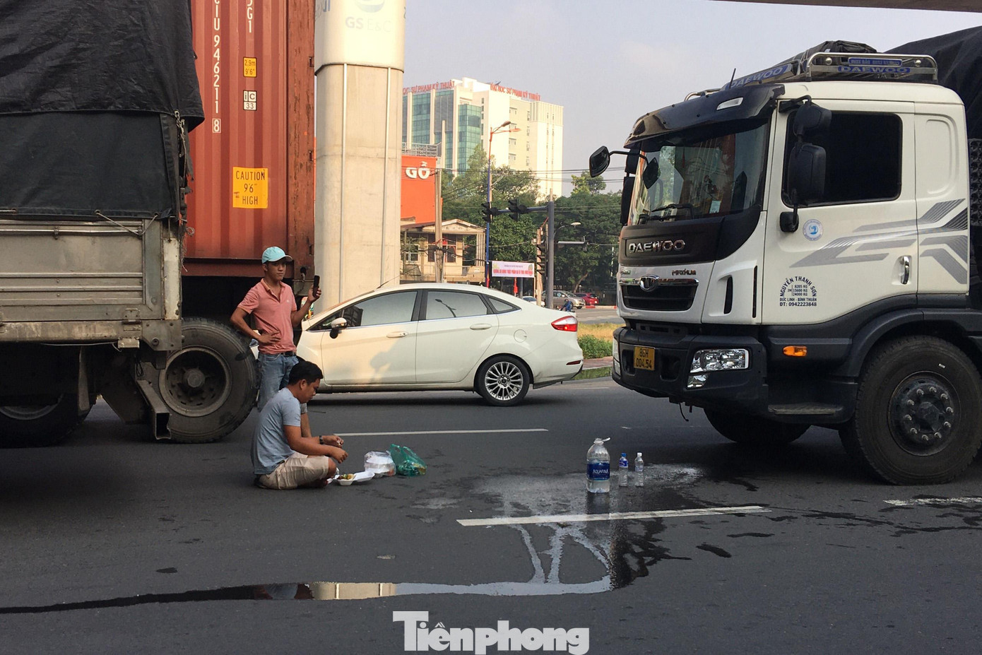 | Kẹt xe quá lâu khiến các tài xế mệt mỏi, nhiều người phải đặt mua cơm hộp rồi ngồi bệt dưới mặt đường để ăn trưa. |