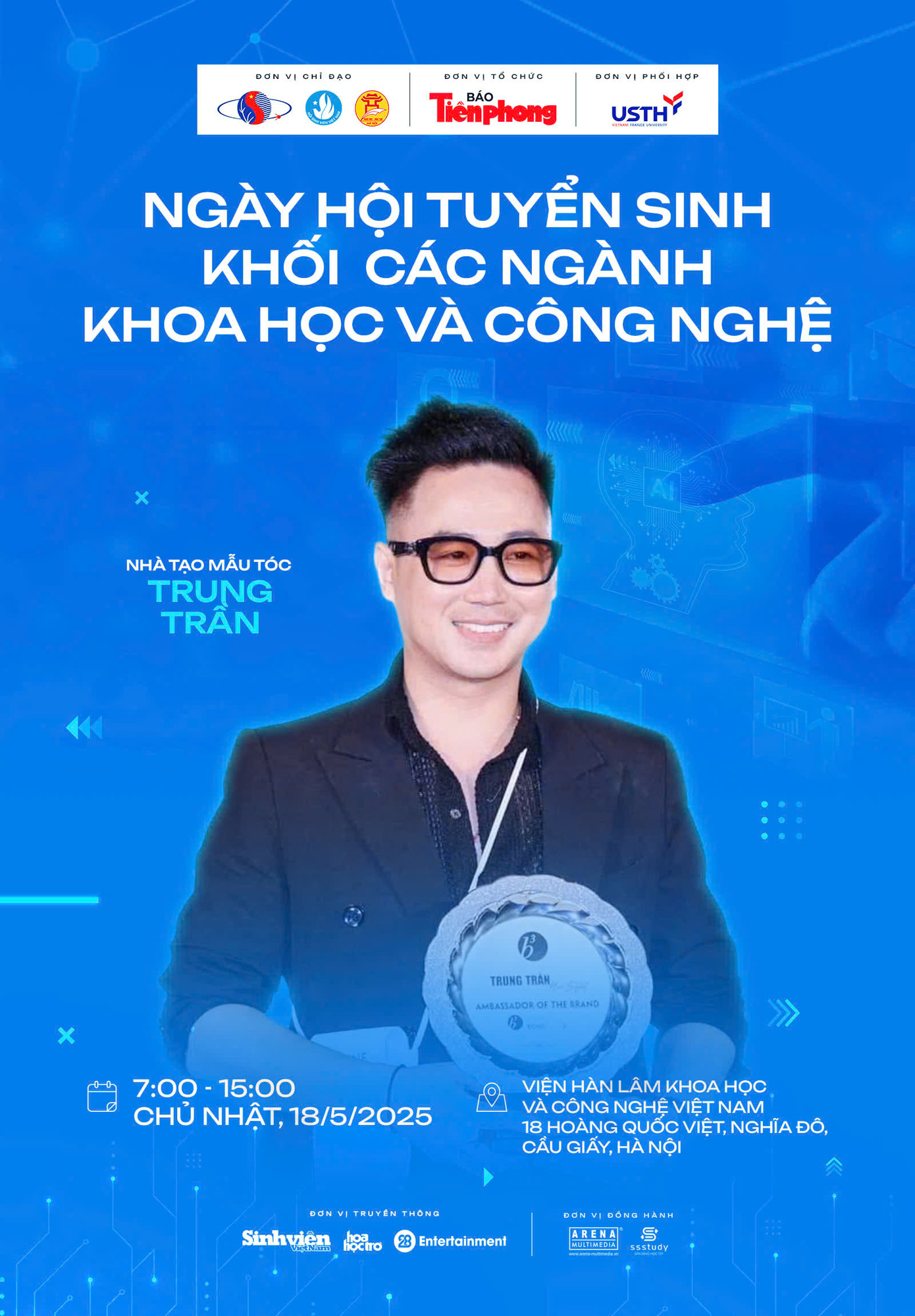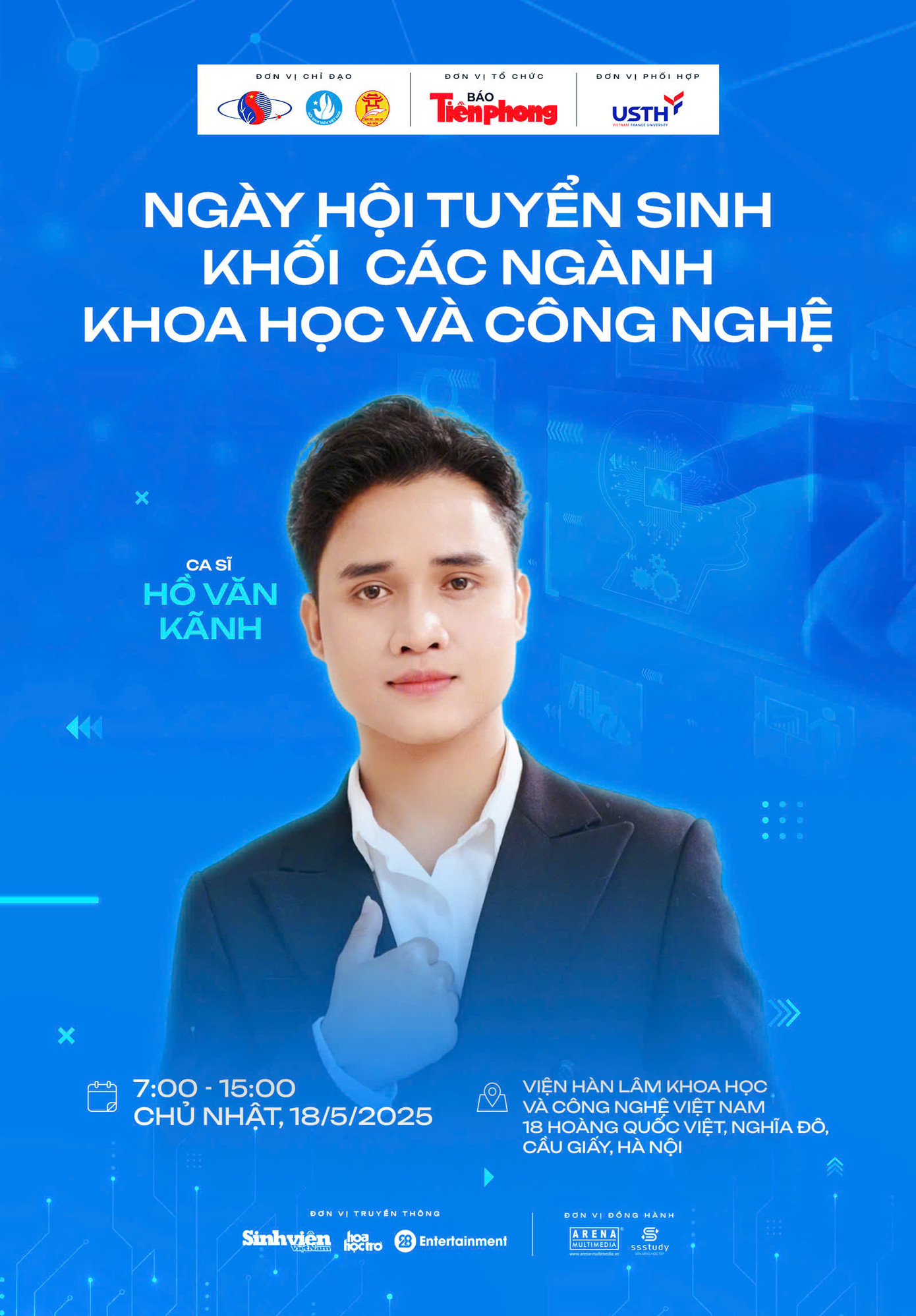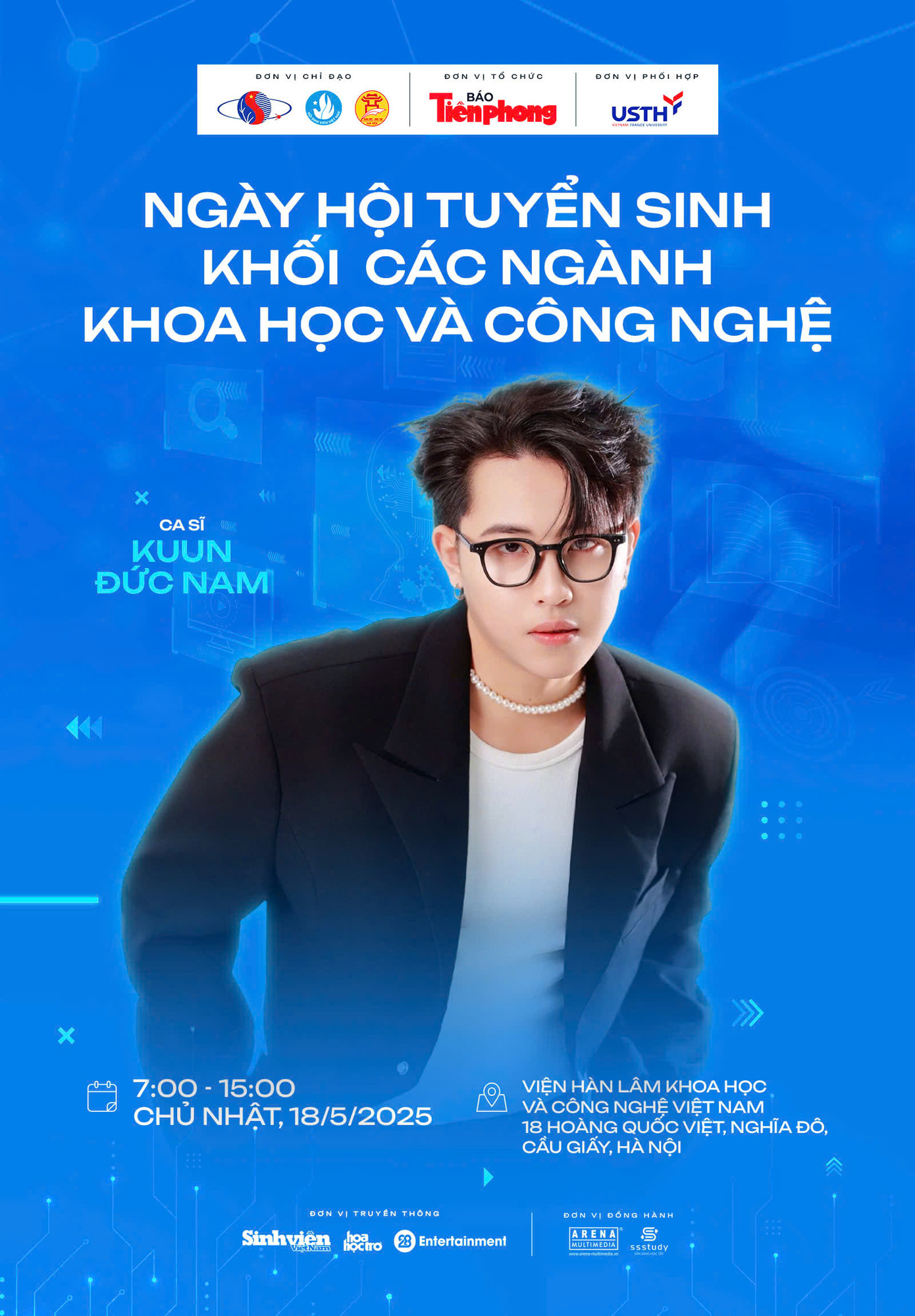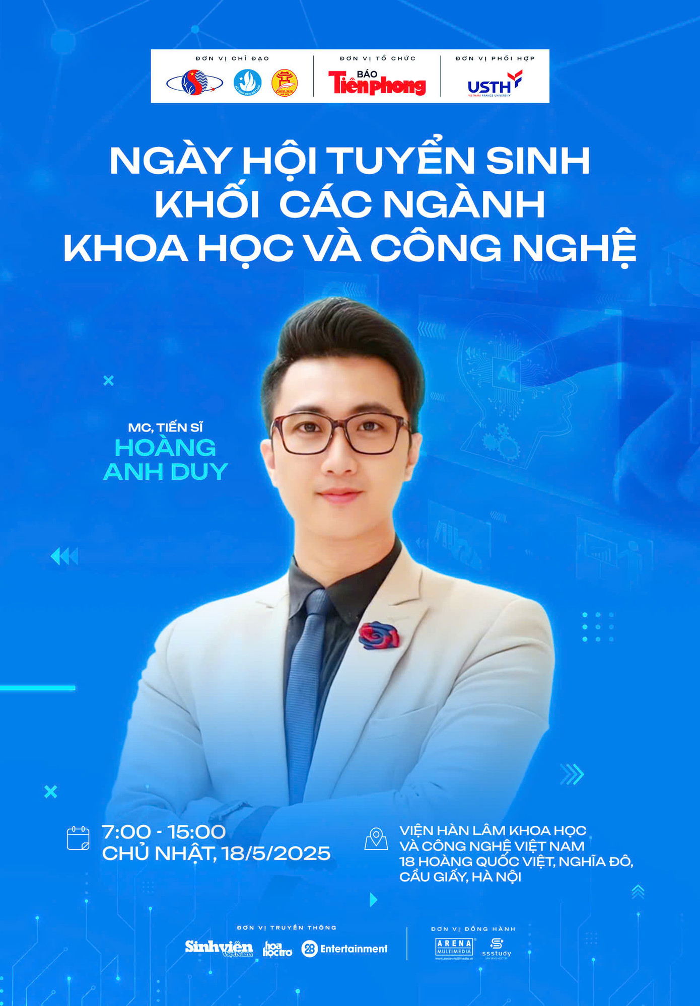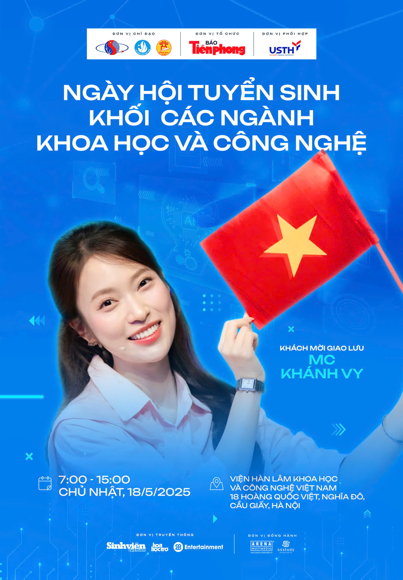Ngày hội tuyển sinh khối các ngành Khoa học và Công nghệ diễn ra vào 7h - 15h Chủ nhật ngày 18/5/2025 tới đây tại Viện Hàn lâm Khoa học và Công nghệ (18 Hoàng Quốc Việt, Phường Nghĩa Đô, Quận Cầu Giấy, Hà Nội), do báo Tiền Phong tổ chức, dưới sự chỉ đạo và phối hợp của Viện Hàn lâm Khoa học và Công nghệ Việt Nam, T.Ư Hội Sinh viên Việt Nam, Sở GD&ĐT Hà Nội, Trường Đại học Khoa học và Công nghệ Hà Nội (USTH)...
