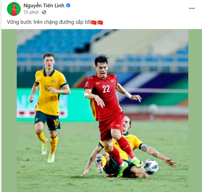 Cùng đó, cầu thủ Tiền Linh cũng có cập nhật đầu tiên trên trang cá nhân. Anh viết: "Vững bước trên chặng đường sắp tới.". Bài đăng của Tiến Linh cũng nhận hơn 24.000 lượt likes sau 5 phút đăng tải.