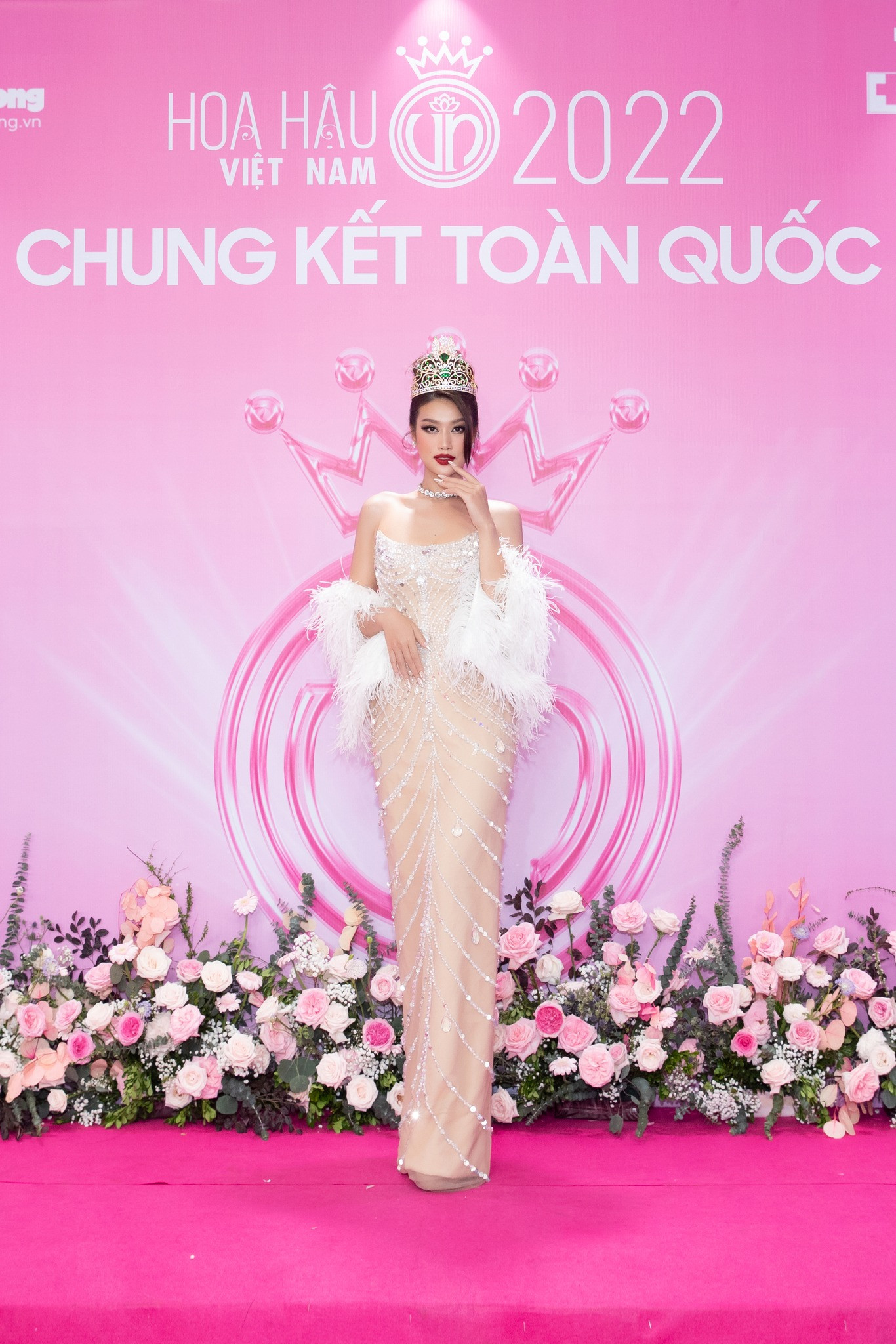 Trong đêm Chung kết Hoa hậu Việt Nam 2022, Đoàn Thiên Ân không hề kém cạnh các nàng hậu khác về sắc vóc. Bộ váy ánh kim đã tôn lên vóc dáng mảnh mai của Thiên Ân sau khi giảm cân, thêm chiếc khăn choàng lông giúp nàng hậu mang vẻ đẹp kiểu cổ điển.