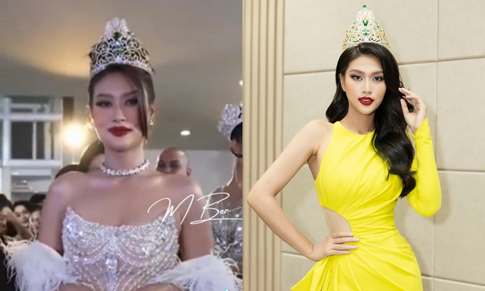 Đến khi về nước, Thiên Ân lại liên tục phải tham gia sự kiện, gặp gỡ truyền thông và luôn cần đeo vương miện khi xuất hiện. Vì thế mà ê-kíp của nàng hậu chưa có thời gian sửa chữa vương miện.