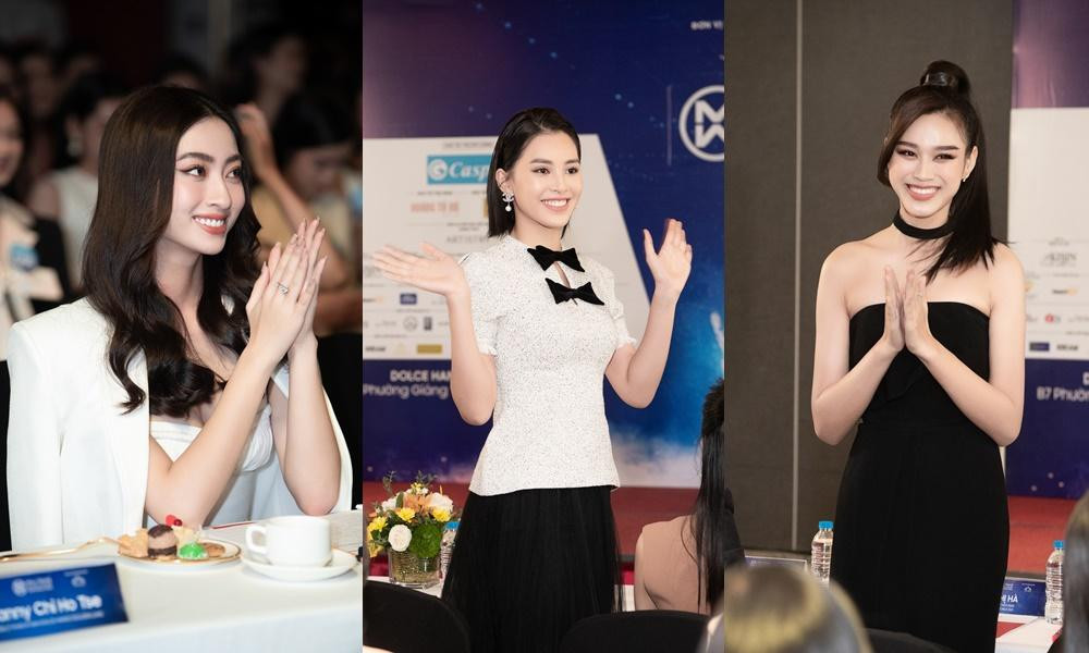 Cũng trong vòng sơ loại này, các Hoa hậu Đỗ Thị Hà, Tiểu Vy và Lương Thùy Linh đã có màn khoe sắc rực rỡ, mỗi người một phong cách nhưng đều xinh đẹp rạng ngời. Chưa kể, ba 'nàng Hậu' đều rất nhiệt tình, thân thiện chia sẻ các kinh nghiệm thực tế đầy hữu ích cho các thí sinh để trở thành gương mặt nổi bật nhất.