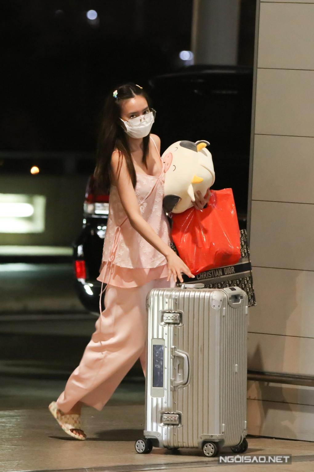 Đêm ngày 19/8, dàn cast của show thực tế Running Man bản Việt đã cùng nhau bay sang Hàn Quốc để ghi hình. Lan Ngọc gây ngạc nhiên khi cô diện trang phục khá giống đồ ngủ với quần ống rộng, áo hai dây màu hồng. (Ảnh: Ngoisao.net)
