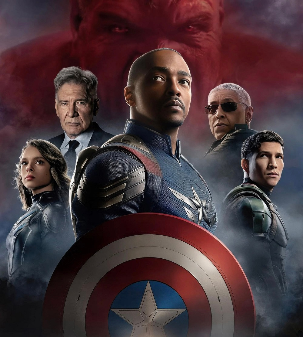 Captain America: Brave New World đánh dấu lần đầu tiên Sam Wilson (Anthony Mackie) cầm khiên của Đội Trưởng Mỹ trên màn ảnh rộng khi anh kế thừa danh hiệu này từ Steve Rogers (Chris Evans) vào cuối Avengers: Endgame. Trong phần này còn có sự xuất hiện của Harrison Ford - khi nhân vật của ông biến thành Red Hulk.