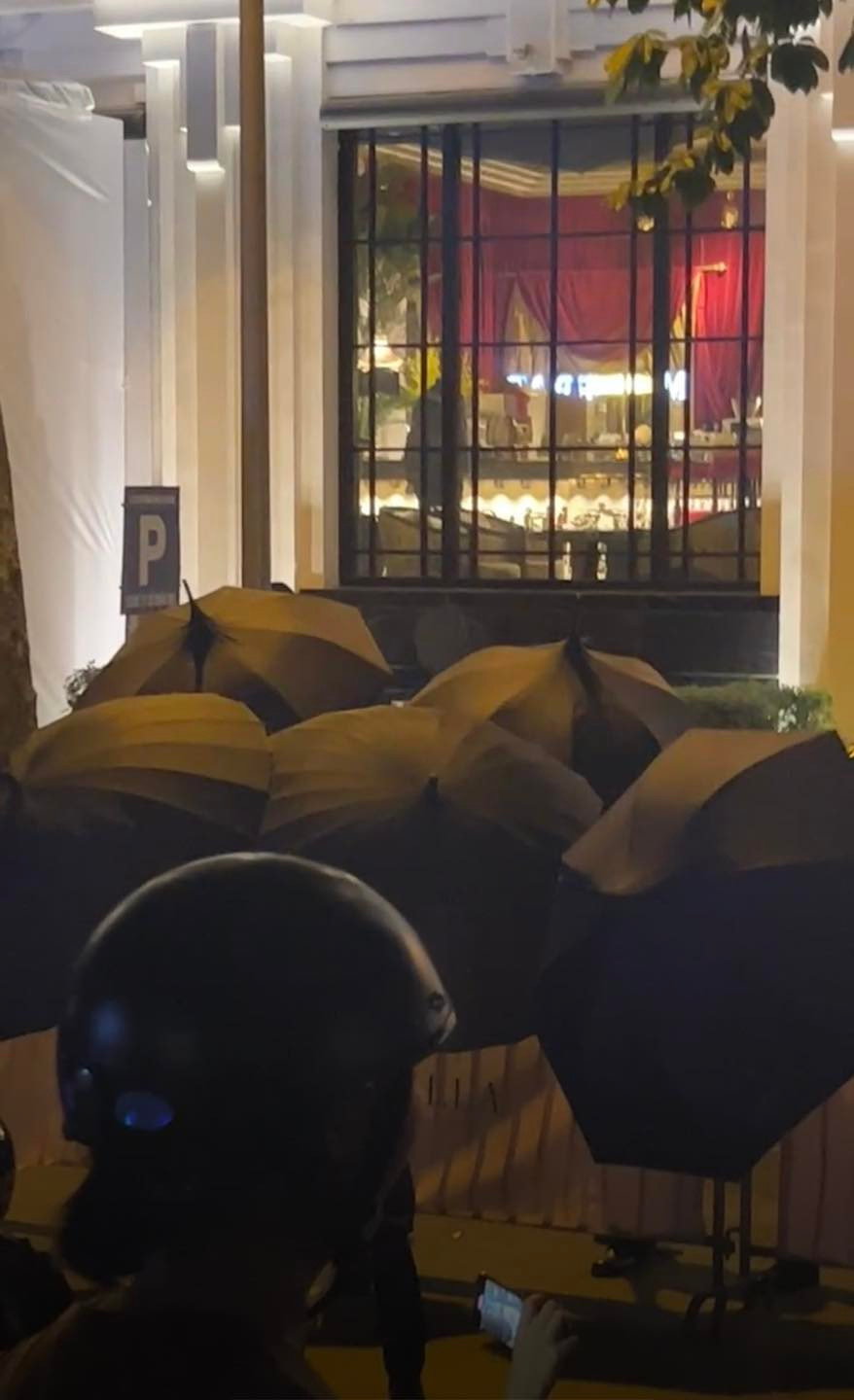 | Dù đã nửa đêm nhưng lượng người ở trước cửa khách sạn vẫn vô cùng đông đúc. |