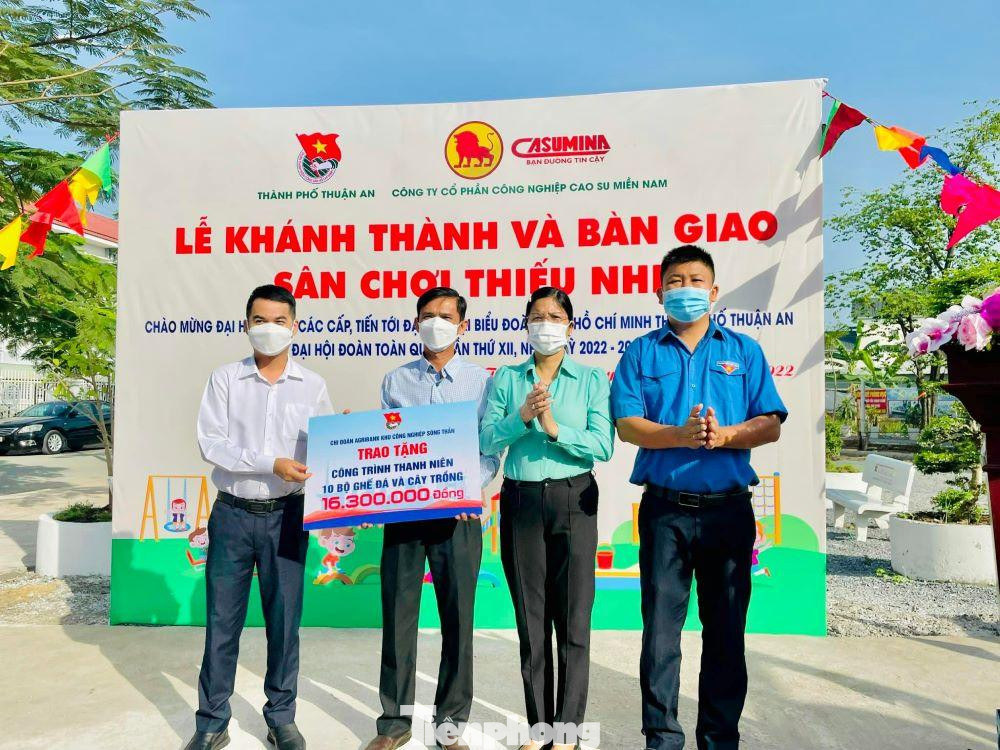 Sau thời gian thực hiện, ngày 6/4, các đơn vị tổ chức lễ khánh thành và bàn giao công trình thanh niên sân chơi thiếu nhi tại khu phố Hòa Lân 1, phường Thuận Giao, TP Thuận An.