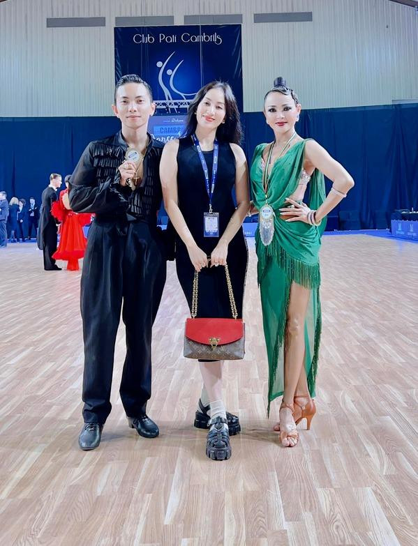 Cô chia sẻ: "Chúc mừng ông xã và bạn nhảy đã tạo nên lịch sử mới cho dancesport Việt Nam. Phan Hiển - Thu Hương đạt được 3 huy chương vàng ở 3 hạng mục tham gia 5 điệu toàn năng Latin, điệu đơn Paso và điệu đơn Jive".