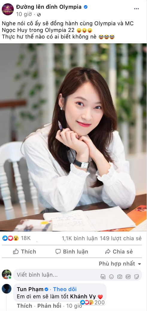 Trước đó, trên fanpage của Đường Lên Đỉnh Olympia bất ngờ "nhá hàng" hình ảnh của "hot girl 7 thứ tiếng" Khánh Vy cùng câu hỏi bỏ ngỏ về việc cô nàng sẽ tham gia Đường Lên Đỉnh Olympia năm thứ 22.