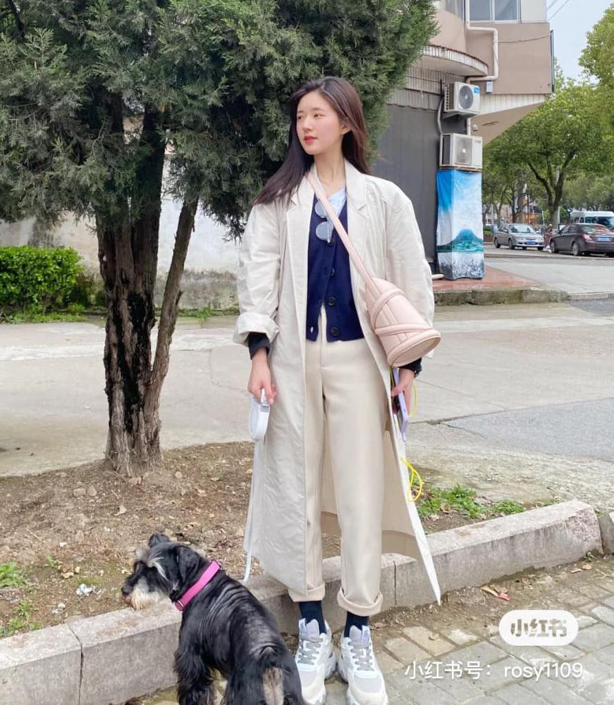 Set đồ này chỉ toàn màu nhã nhặn nhưng Triệu Lộ Tư vẫn nổi bật nhờ chọn trang phục rất khéo, mặc layer nhiều lớp mà không hề bị rối.