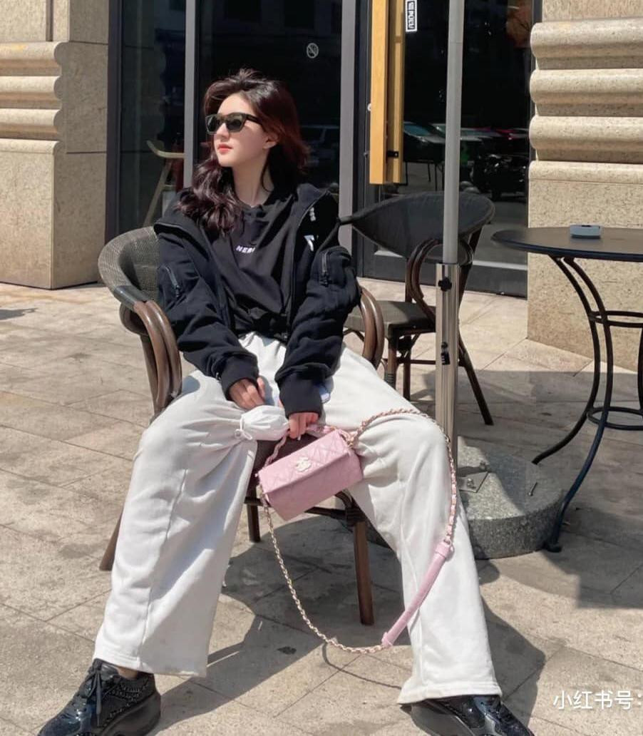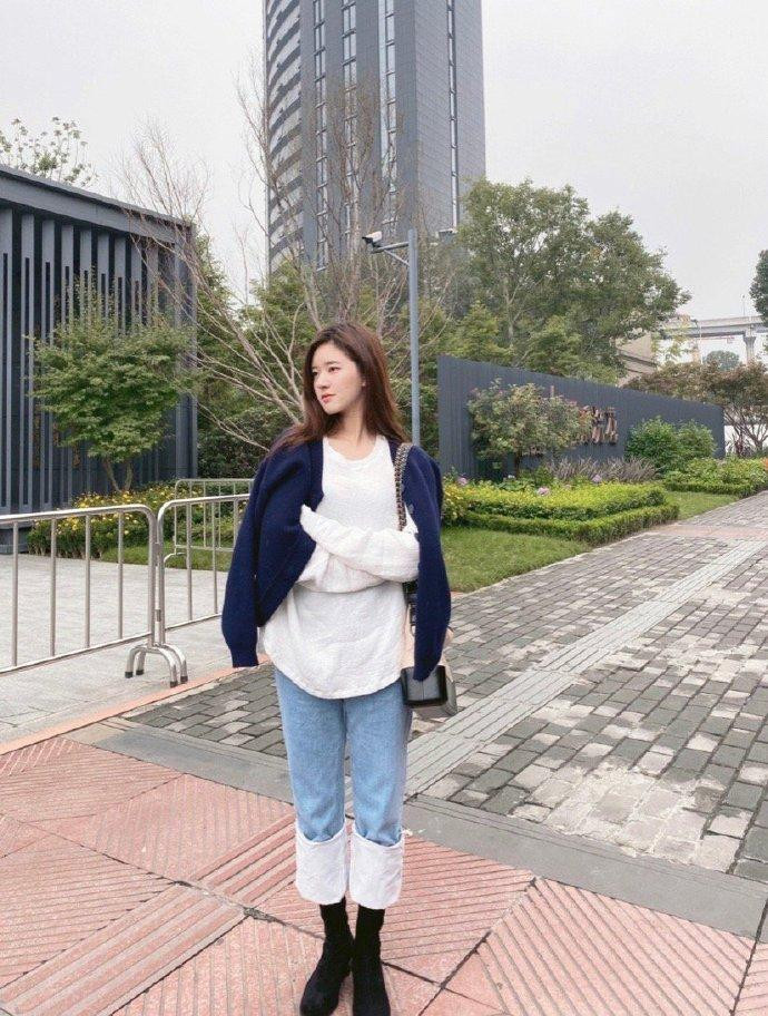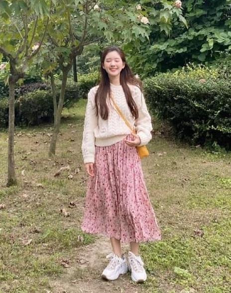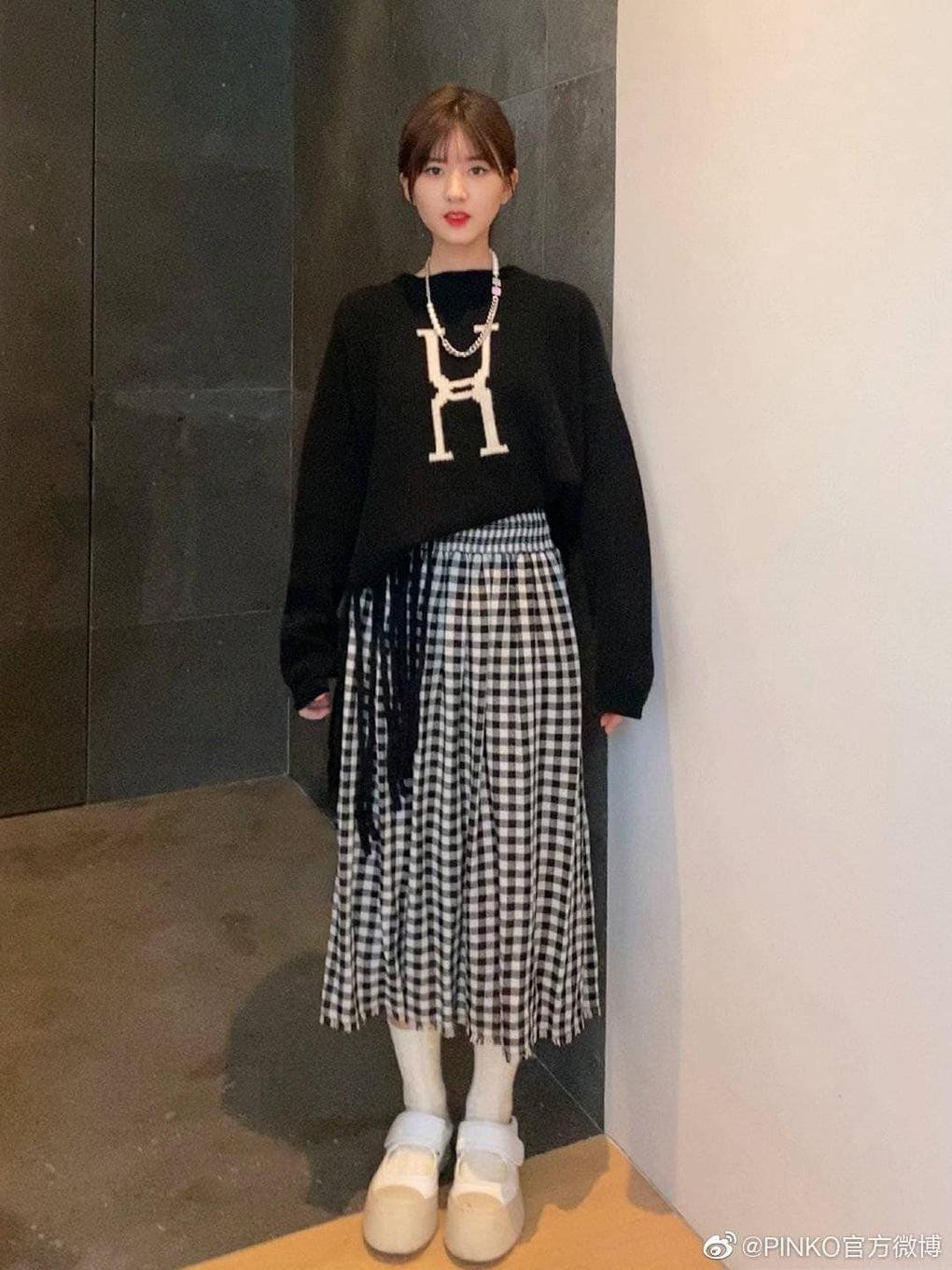 Triệu Lộ Tư chuộng phong cách phóng khoáng với áo nỉ, áo len và chân váy voan, kết hợp cùng giày thể thao là có được set đồ vừa thoải mái vừa ngọt ngào.