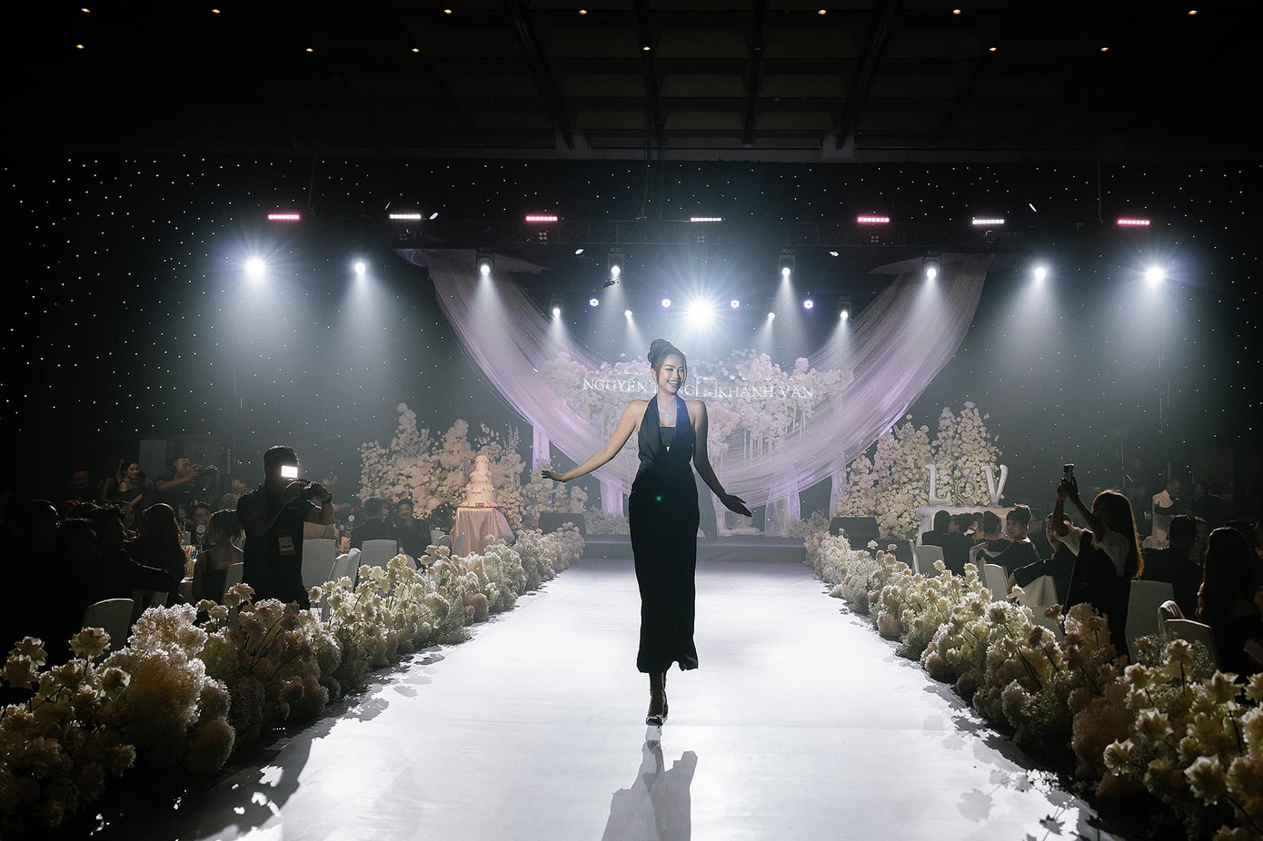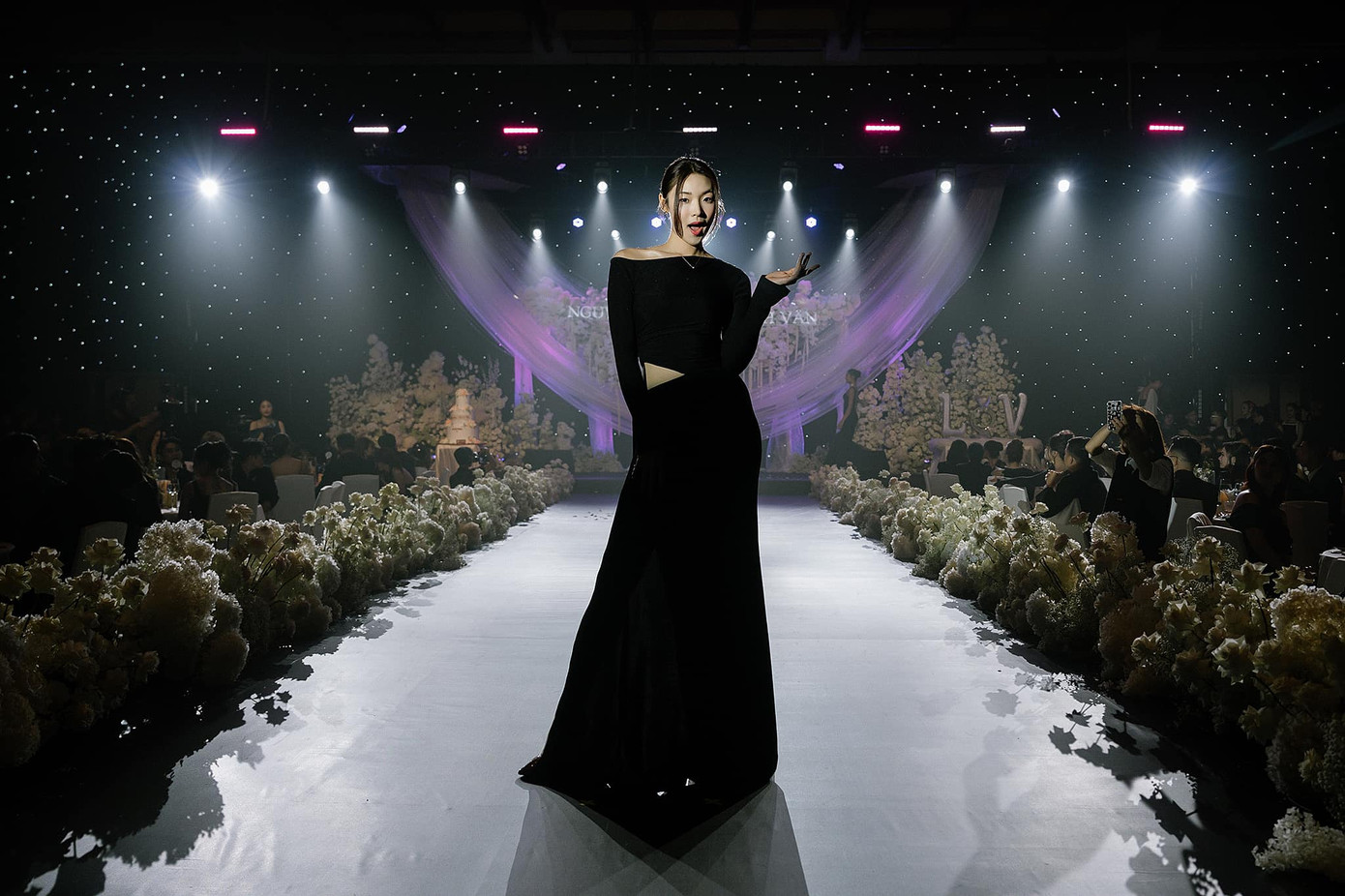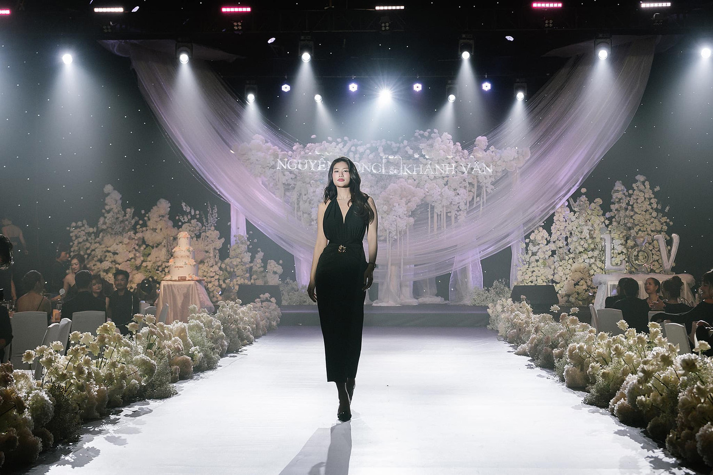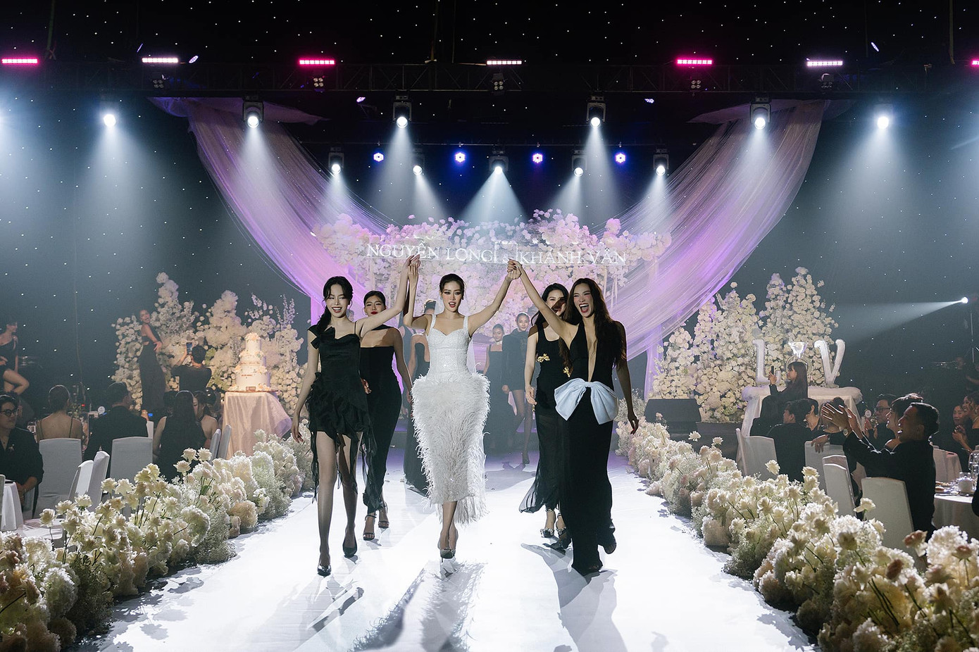 Sau bữa tiệc cưới, mọi người đã cùng nhau trổ tài catwalk ngay trên sân khấu và các khách mời có dịp được thưởng thức màn trình diễn ngẫu hứng của nhiều người đẹp như Hoa hậu Lê Hoàng Phương, Đoàn Thiên Ân hay Ngọc Châu.