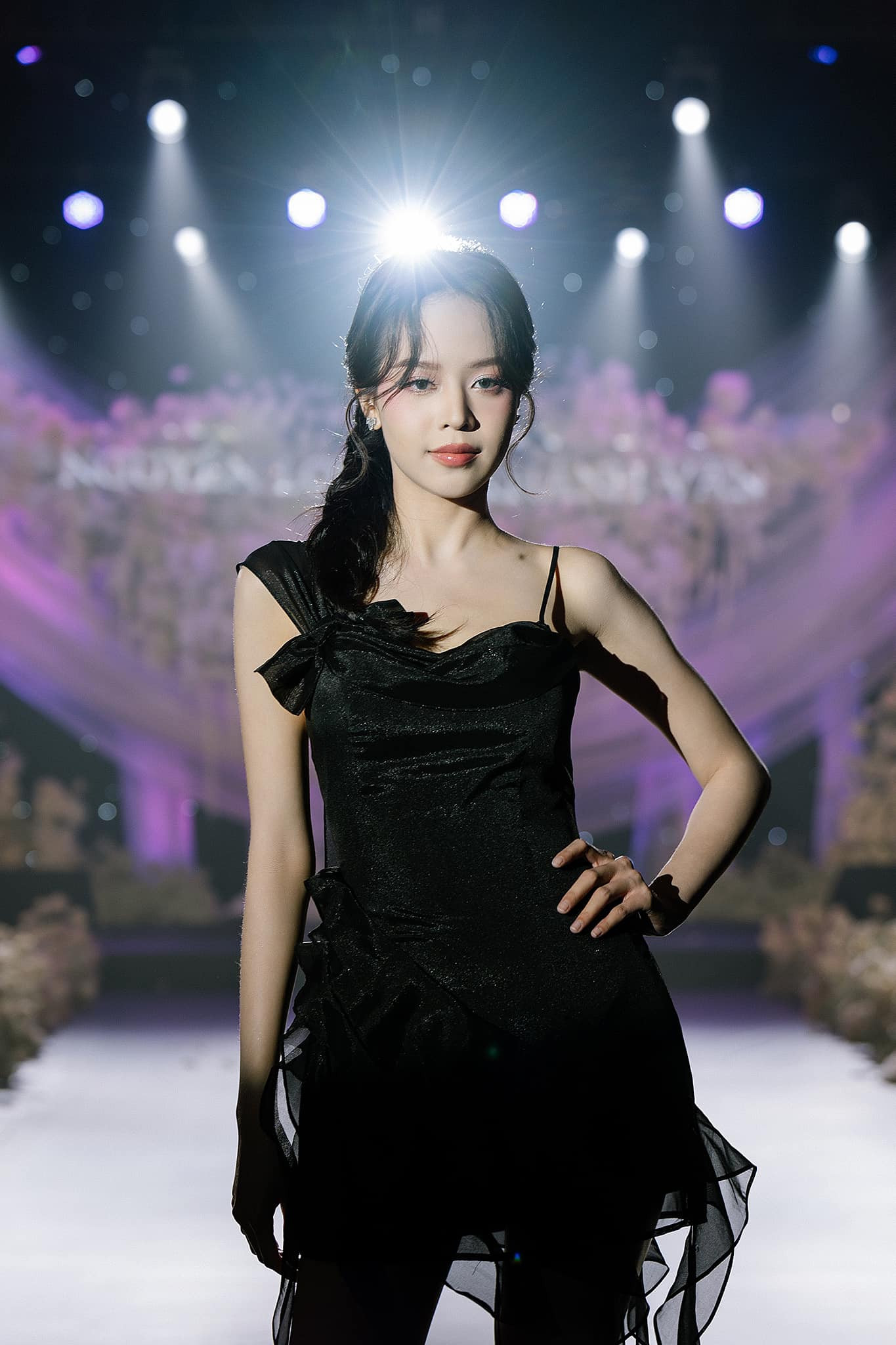 Còn Hoa hậu Thanh Thủy cũng chọn phong cách catwalk từ tốn, mềm mại để hợp với bộ váy voan dịu dàng và kiểu tóc tết lệch một bên của cô. Từ cái quay đầu nhìn về phía khán giả đến nụ cười mỉm, Miss International 2024 Thanh Thủy đều tỏa ra sức hút khó cưỡng.