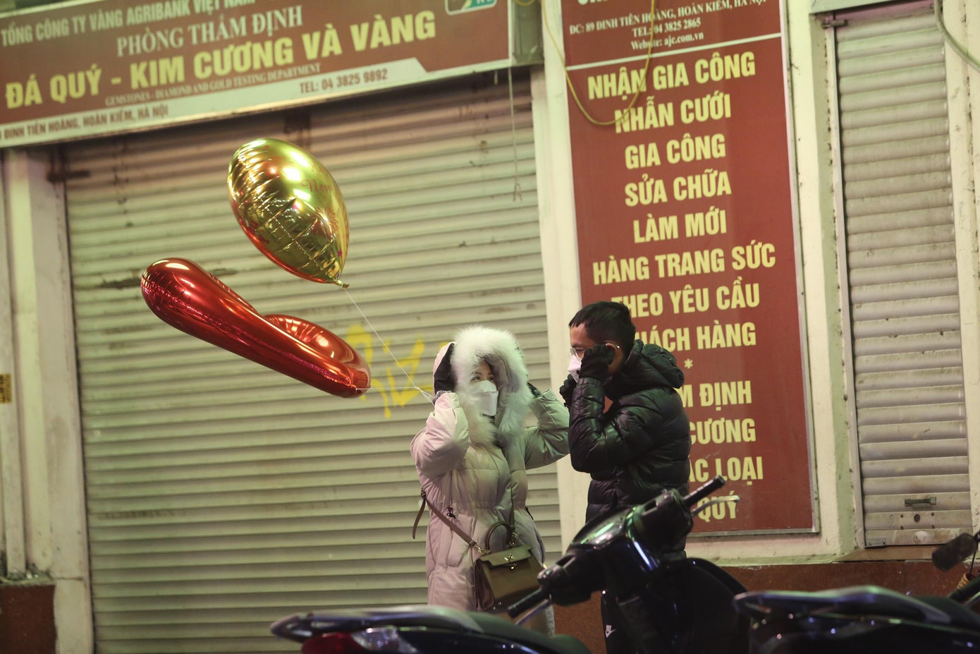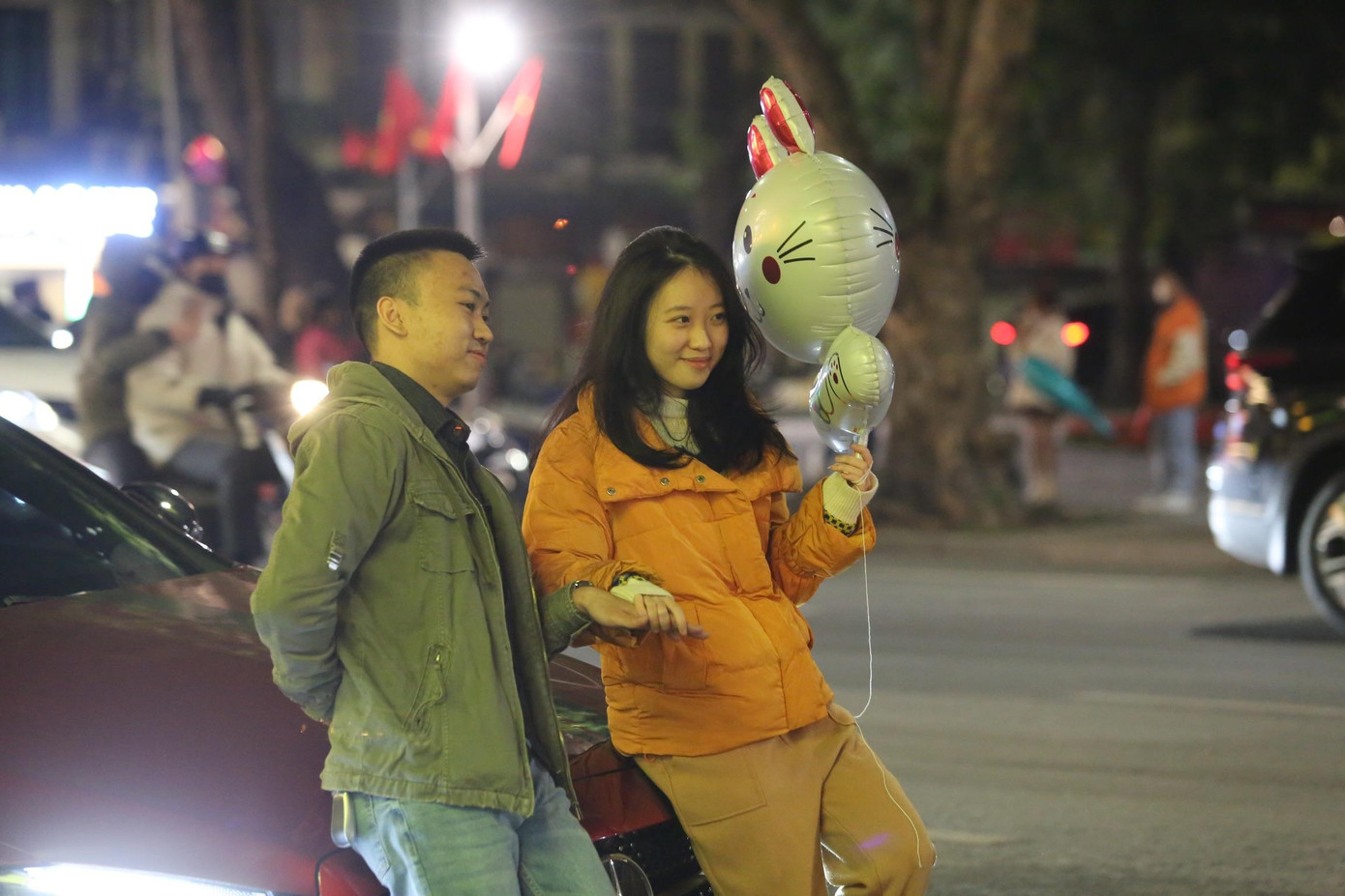 | Thời tiết ở Hà Nội khá lạnh, chỉ còn 11-12 độ, nhiều bạn trẻ vẫn ra đường để đón khoảnh khắc giao thừa bên người thân, người thương. |