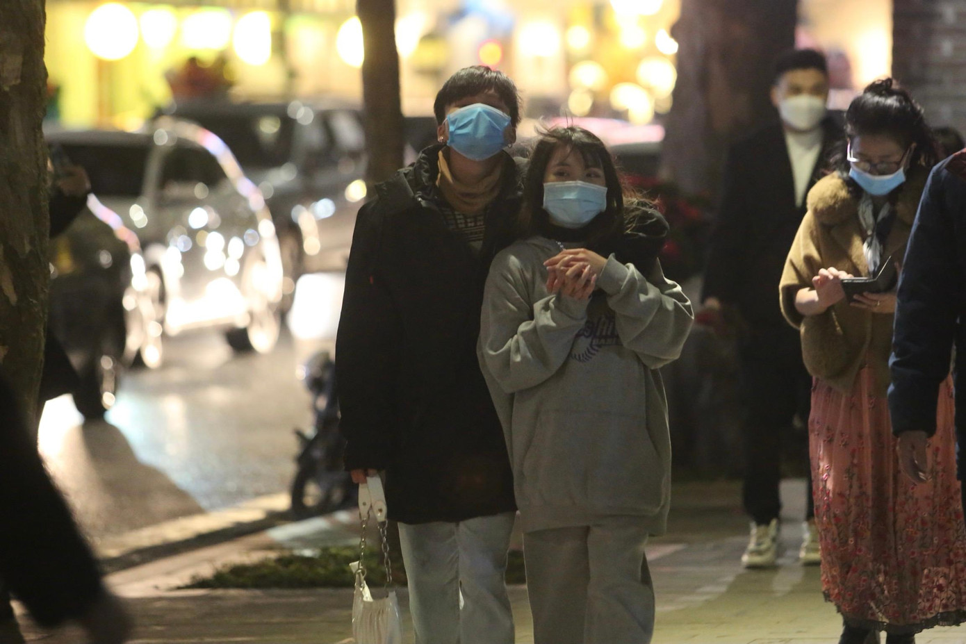 | Đôi bạn trẻ chọn một góc phố đón giao thừa trong cái lạnh 12 độ C. |