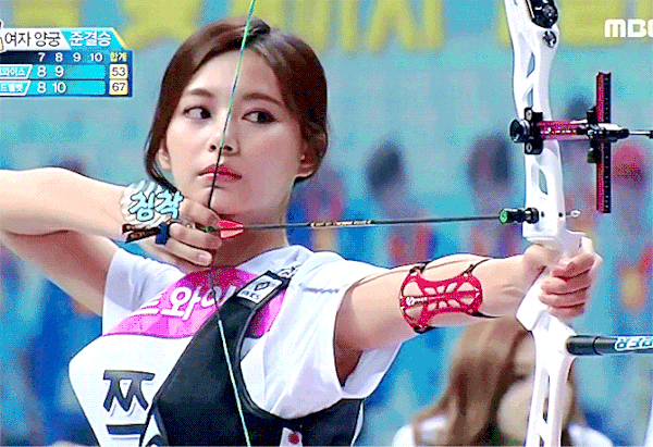 | Mũi tên vừa bắn vô tình làm mái tóc dài của Tzuyu tung bay là một trong những khoảnh khắc huyền thoại, được ví như nữ thần của cô nàng tại ISAC 2016. |