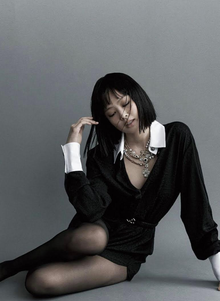 Jennie là gương mặt trang bìa của tạp chí Elle Korea số tháng 8/2021. Vẫn vẻ biếng nhác quen thuộc, cô khiến người hâm mộ choáng váng khi nhận ra mái tóc ngắn cũng có thể gợi cảm đến thế.