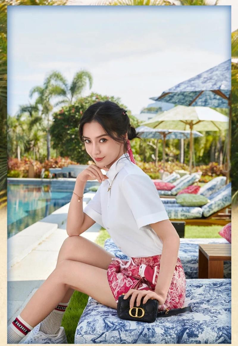 Sau khi làm người mẫu trong chiến dịch tái hiện lịch sử của Christian Dior, với những bộ trang phục dòng Haute Couture kinh điển, Angelababy lại có bộ ảnh quảng bá cho bộ sưu tập mùa Hè giới hạn Dioriviera.