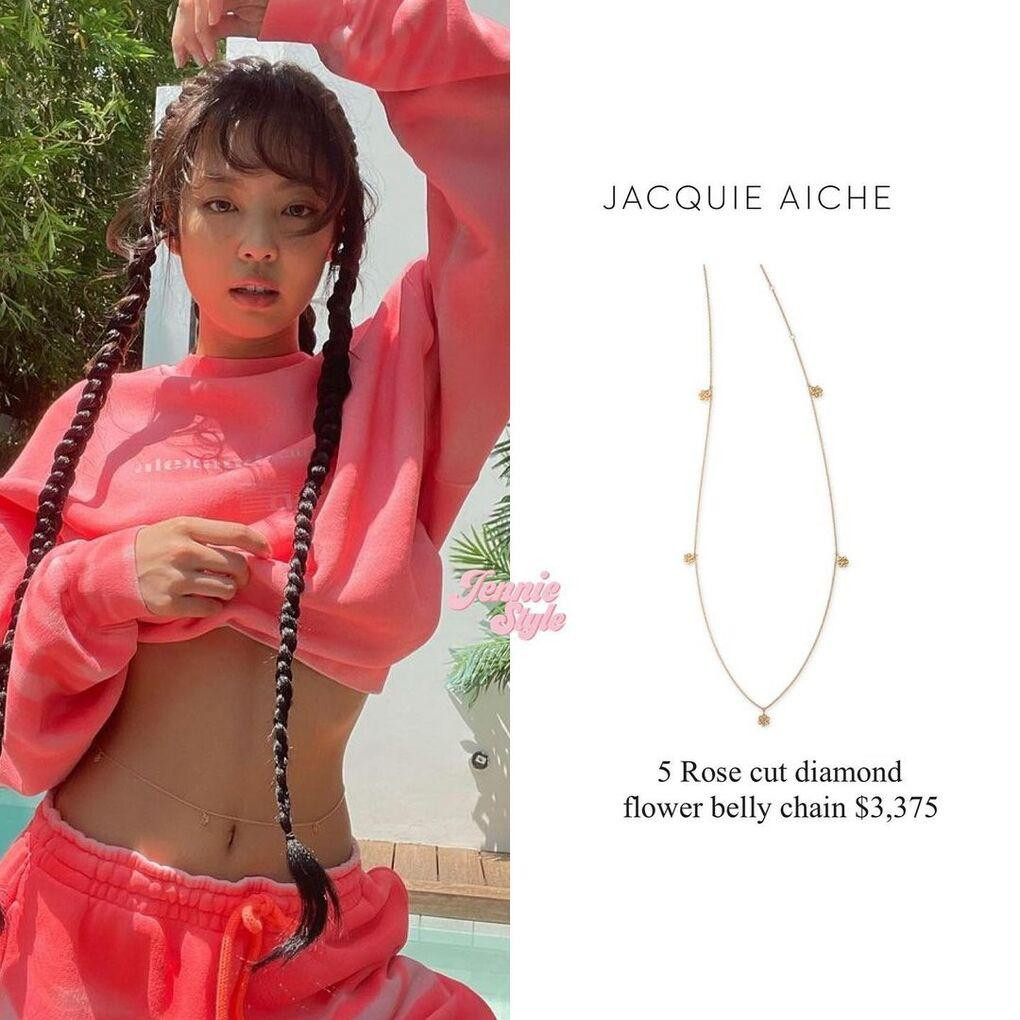 Thời gian gần đây, Jennie liên tục đeo lắc eo khi mặc crop-top. Sợi dây chuyền mỏng manh nhỏ xíu càng khiến netizen trầm trồ trước vóc dáng có đường cong hình chữ S của Jennie.