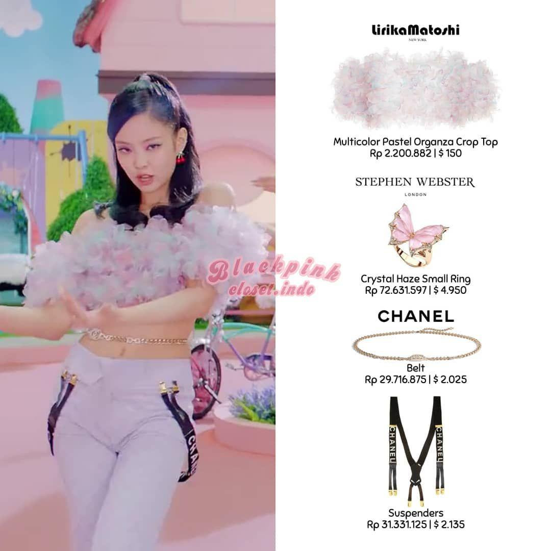 Đến khi quay MV Ice Cream, Jennie lại tỏa sáng với một thiết kế thắt lưng kim loại cực kỳ tinh xảo của Chanel. Đây vốn là thắt lưng thông thường nhưng Jennie hô biến thành lắc eo.