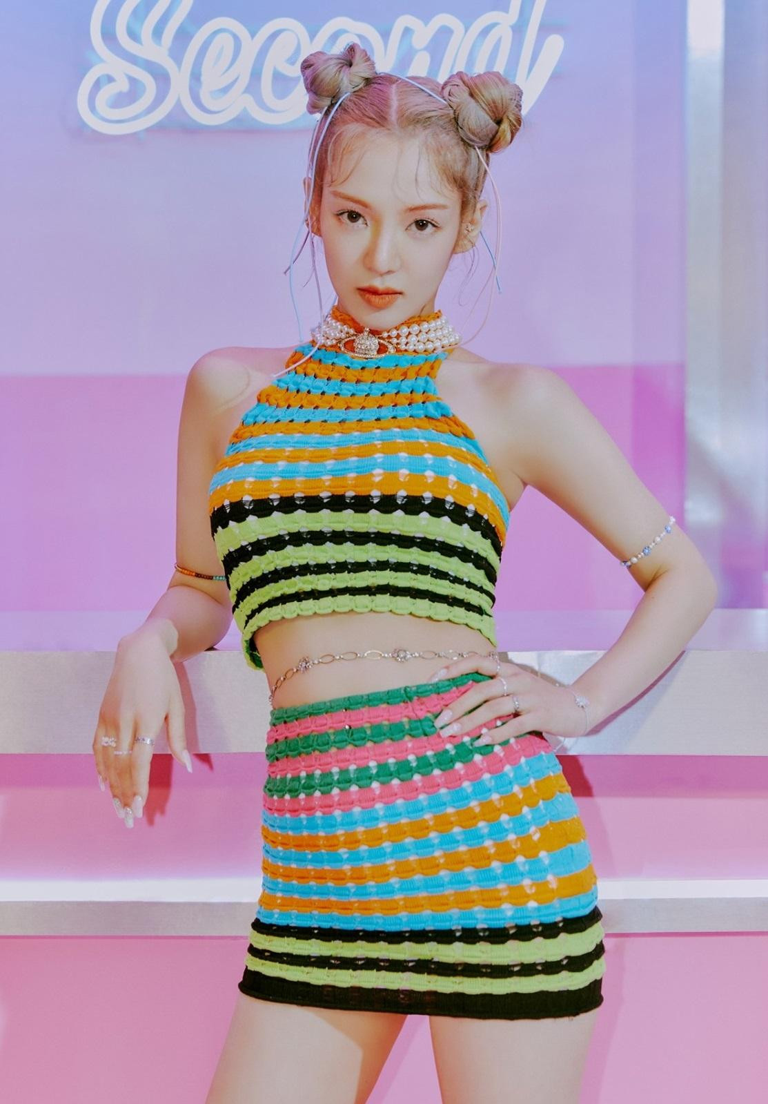 Mới đây, đàn chị Hyoyeon (SNSD) tung ảnh quảng bá album mới cũng khoe khéo vóc dáng thon thả với một sợi lắc eo thanh mảnh, tạo điểm nhấn cho bộ váy áo crop-top thời thượng.